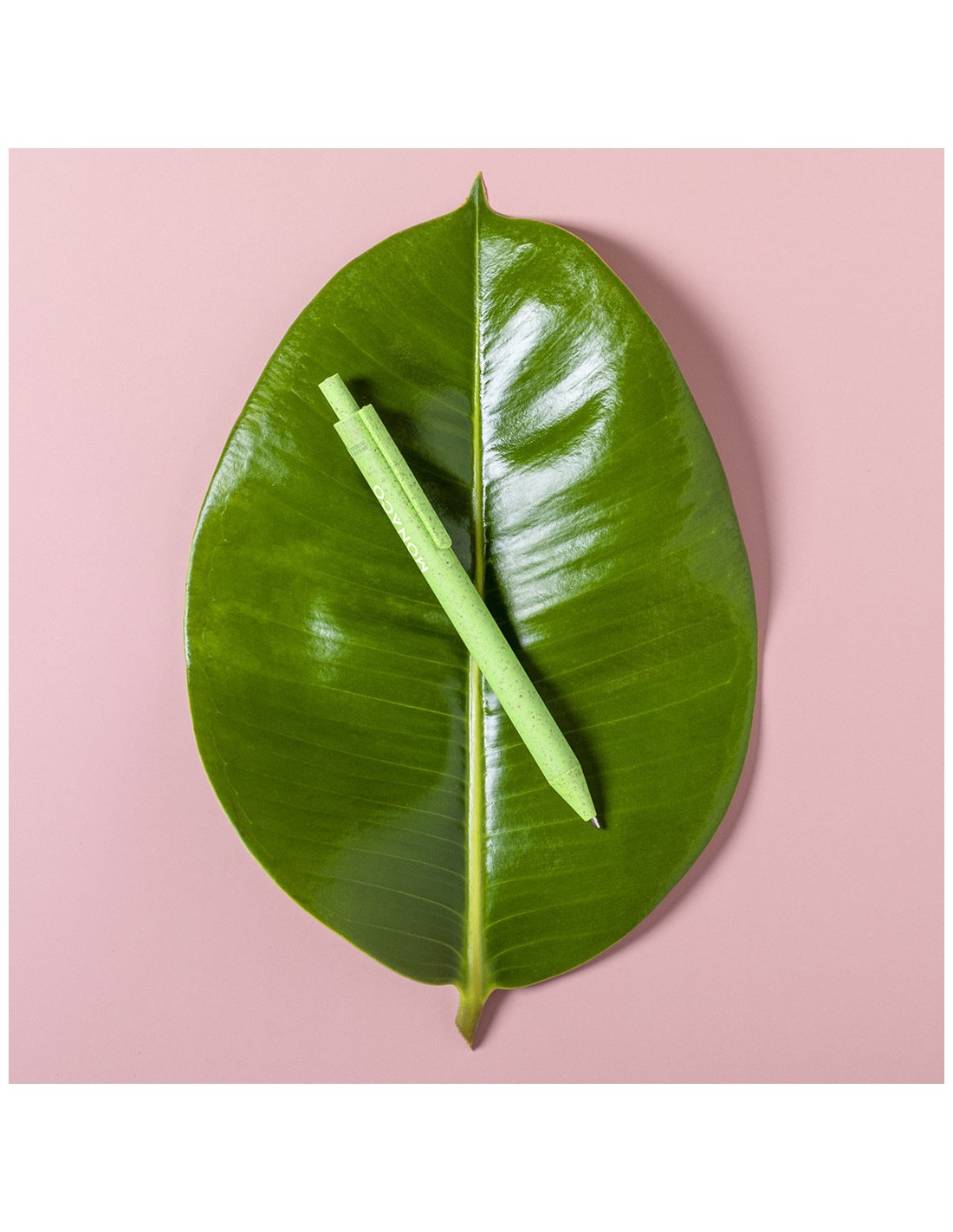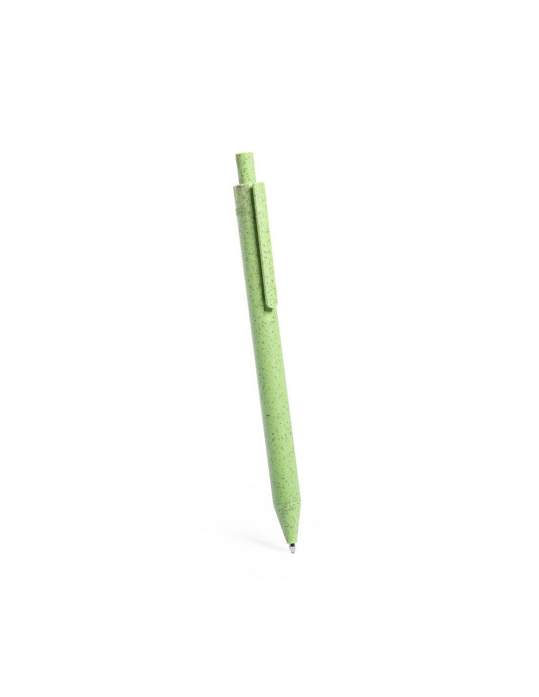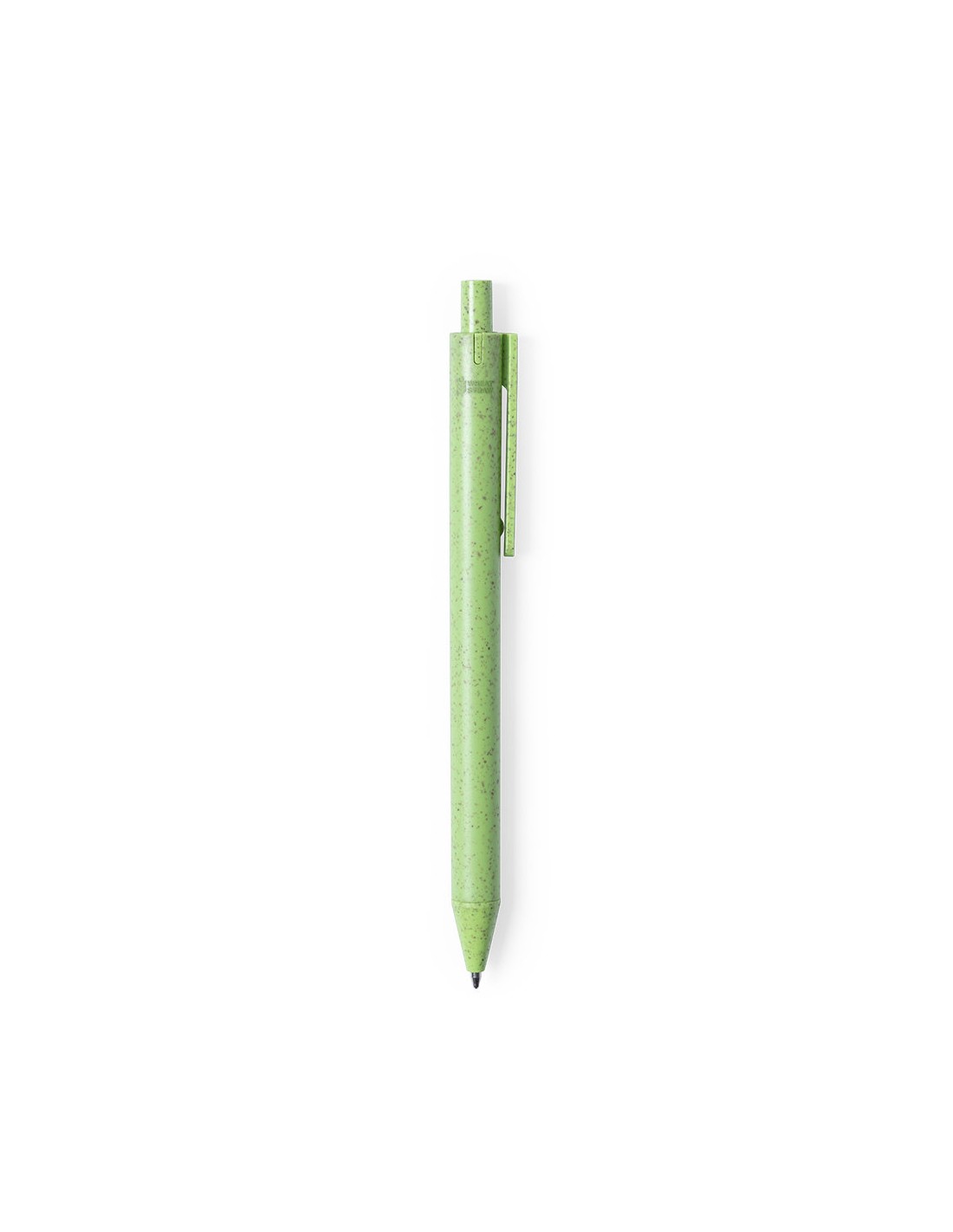 Bolígrafo de línea nature con mecanismo pulsador. Cuerpo en caña de trigo y PP, para así fomentar la utilización de materias primas naturales y reducir las emisiones contaminantes. Clip con amplia superficie de marcaje y disponible en variada gama de colores pastel, con tinta azul. Con distintivo Wheat Straw en la parte superior del bolígrafo.