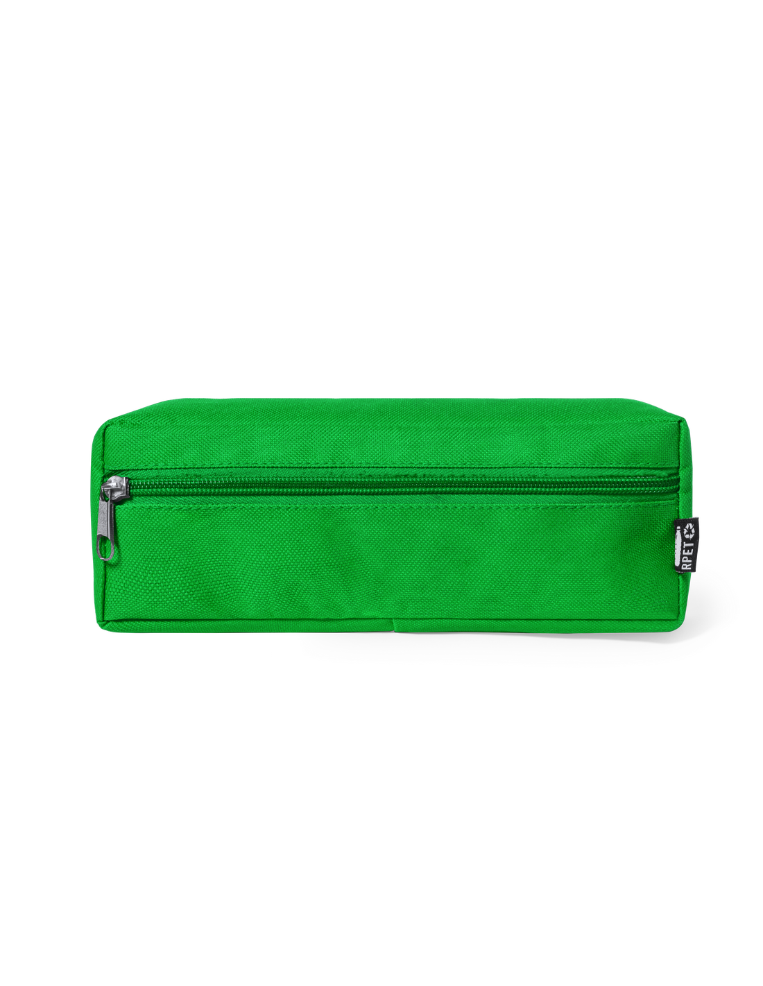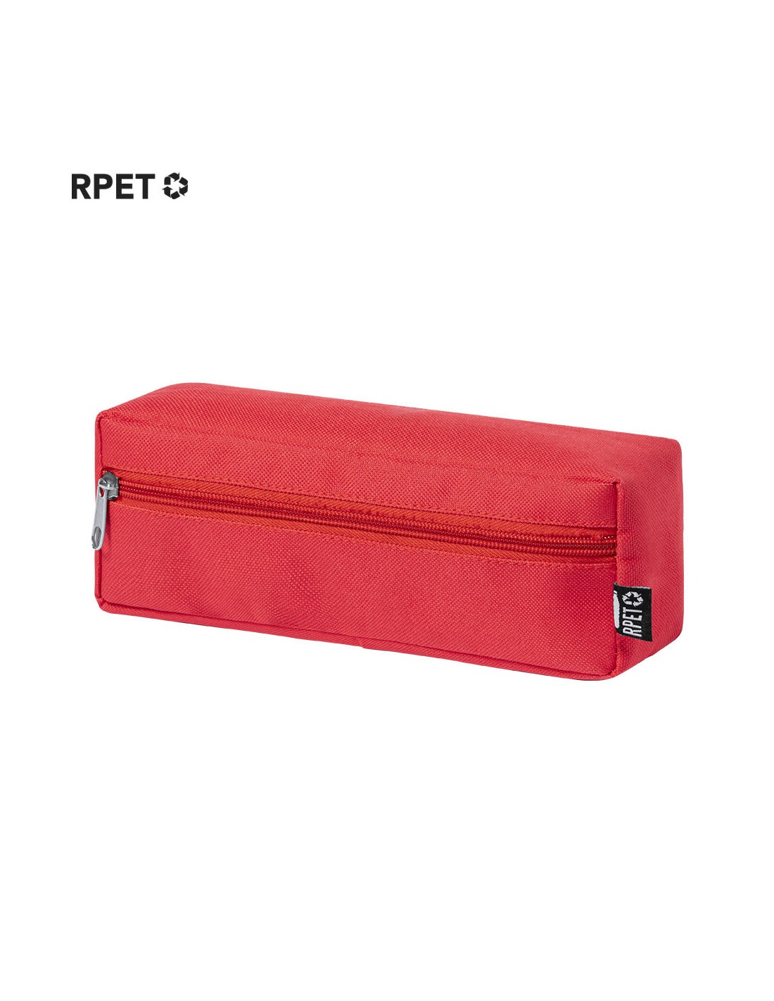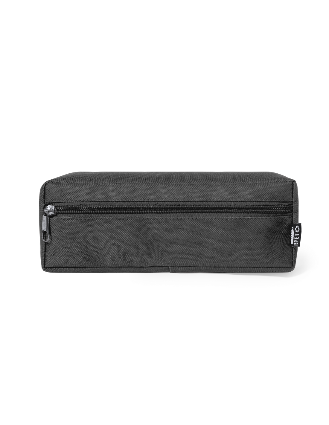 Estuche en resistente poliéster 600D RPET, elaborado a partir de plástico reciclado, para así fomentar la reutilización de residuos plásticos y ayudar a la sostenibilidad del planeta. Con cierre de cremallera en frontal y tirador metálico. Distintivo RPET en etiqueta.