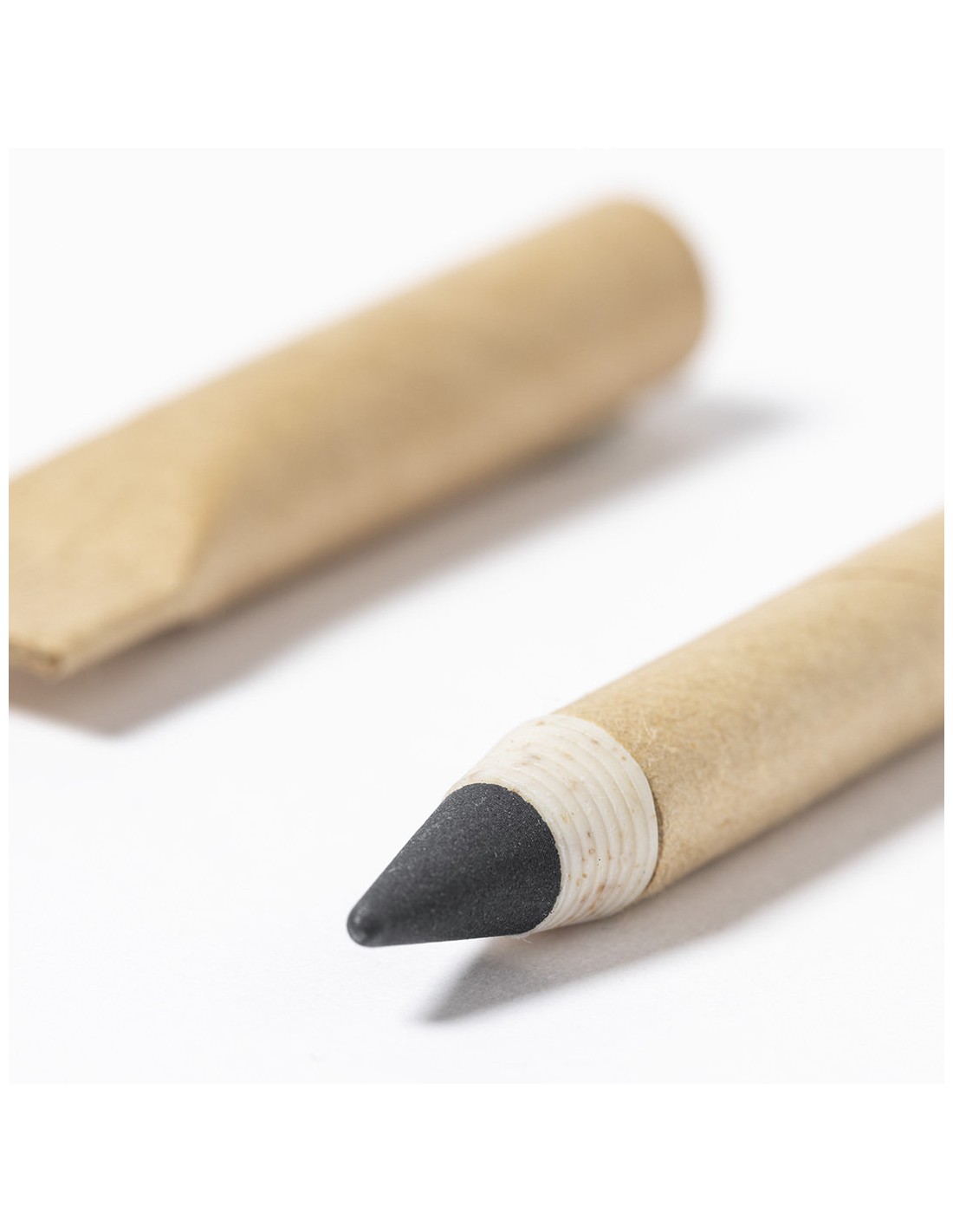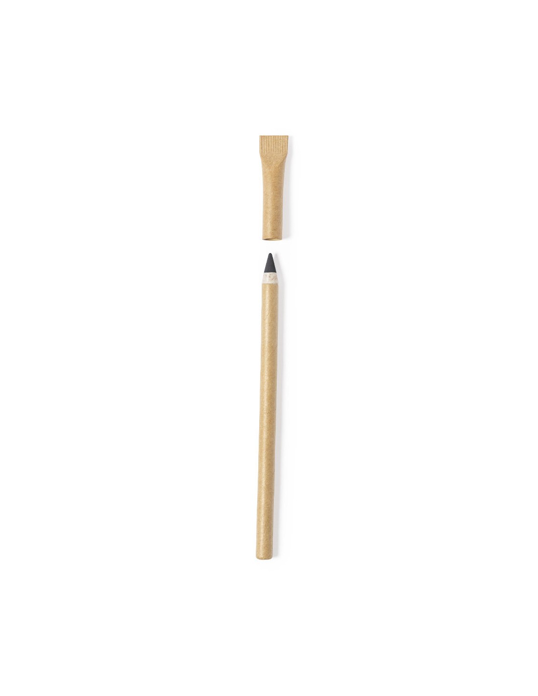 Lápiz eterno de línea nature con capucha. Fabricado en papel reciclado y con punta en caña de trigo, fomentando la utilización de materias primas naturales y reducir las emisiones contaminantes. Reutilizable y con escritura infinita, para así usar siempre el mismo lápiz y no generar residuos.
