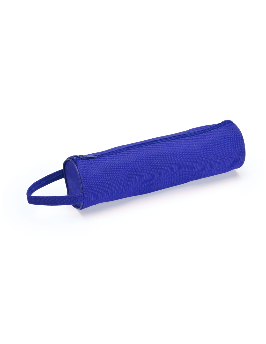 Clásico estuche de cremallera y diseño cilíndrico en resistente poliéster 600D. Con práctica asa de transporte y cremallera a juego.