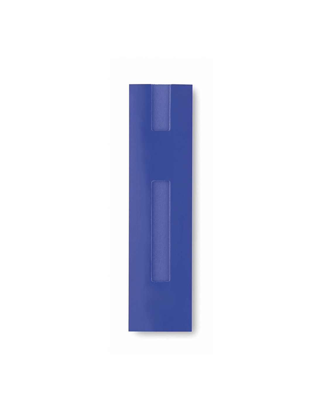 Funda para bolígrafo en resistente cartón de vivos colores y con diseño de ventana.