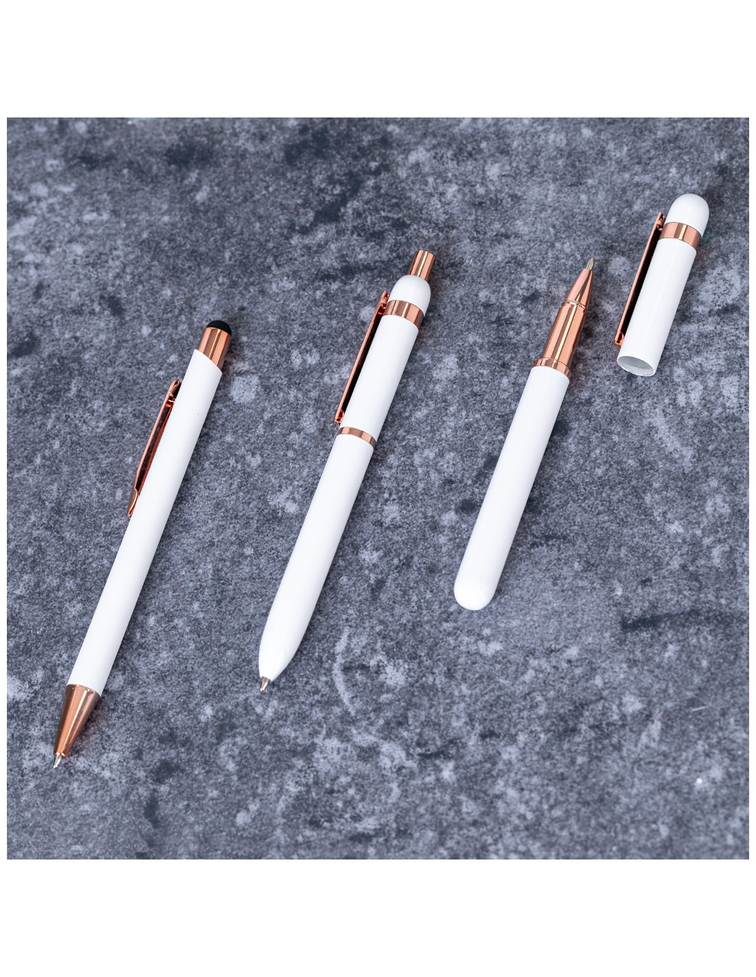 Elegante bolígrafo especialmente diseñado para el marcaje en láser con logotipo en color rosado. De mecanismo pulsador, clip metálico y accesorios en acabado cobre, con detalles plásticos en acabado rosado. Con cartucho jumbo y en tinta azul. Disponible en dos distintivos colores.Presentado en elegante caja de diseño negra.