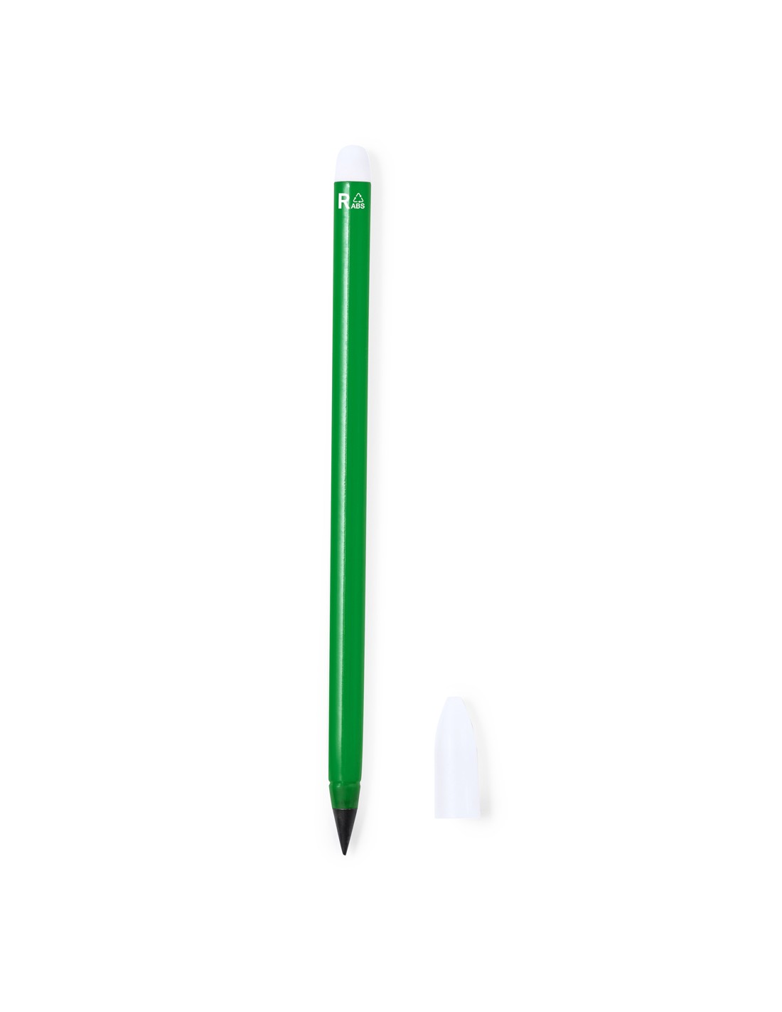 Lápiz eterno fabricado en RABS. Reutilizable y con escritura infinita, para usar siempre el mismo lápiz y no generar residuos. Incluye goma de borrar en la parte superior del lápiz y capucha para proteger la punta. Con logotipo RABS en un extremo de la caña. Disponible en una amplia gama de colores.El RABS es un plástico altamente reciclable de gran resistencia y con multitud de aplicaciones que lo convierte en una solución eco-friendly. con certificación RCS, que garantiza el origen reciclado del mismo.