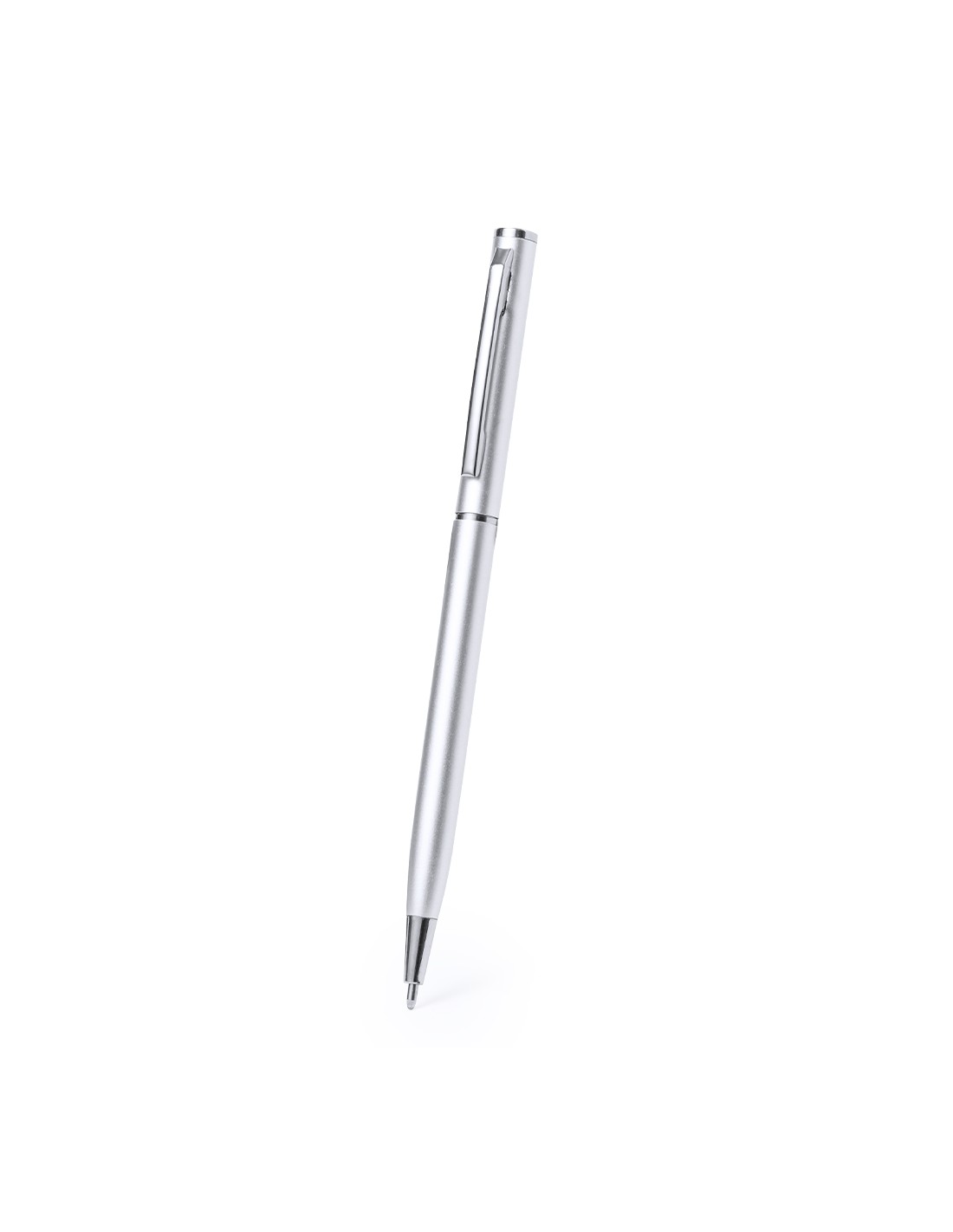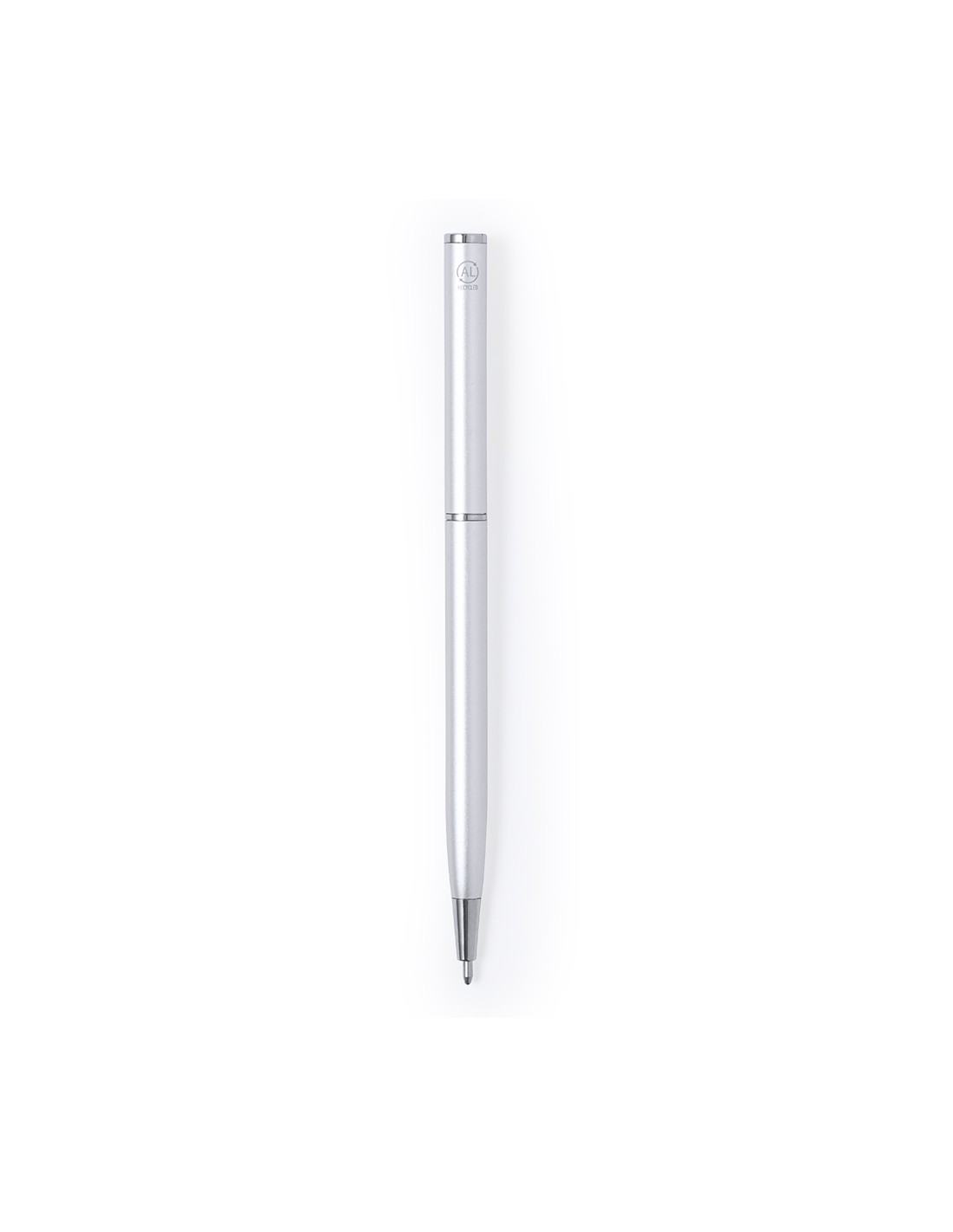 Bolígrafo con cuerpo de Aluminio Reciclado. Clip metálico y accesorios cromados. De mecanismo giratorio y de tinta azul. Con logotipo Aluminio Reciclado.El Aluminio Reciclado es un material con posibilidades de reciclaje casi infinitas, sin perder sus propiedades originales y consumiendo menos energía en este proceso.Certificación GRS (Global Recycled Standard / Estándar de Reciclaje Global), que garantiza el origen reciclado del material usado para fabricar el producto.