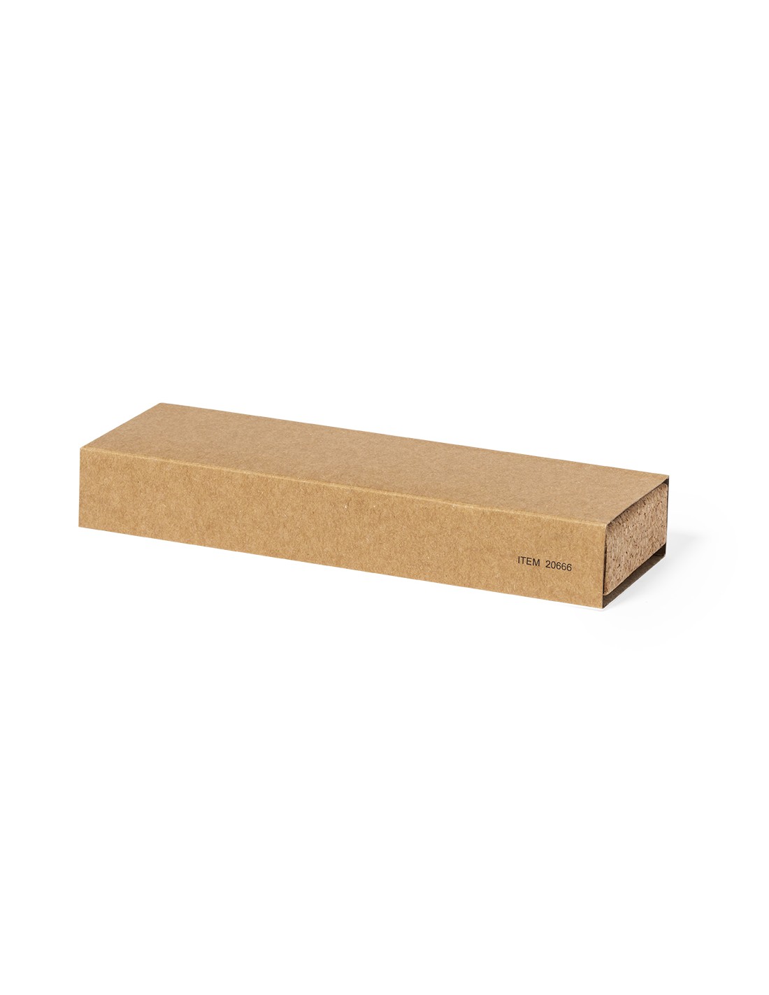 Elegante bolígrafo de corcho y metal con mecanismo giratorio. Cuerpo en resistente metal de acabado brillo y empuñadura en corcho. Clip metálico y en tinta azul. Presentado individualmente en un estuche de corcho.Elaborado con elementos vegetales para así fomentar la utilización de materias primas naturales y reducir las emisiones contaminantes.
