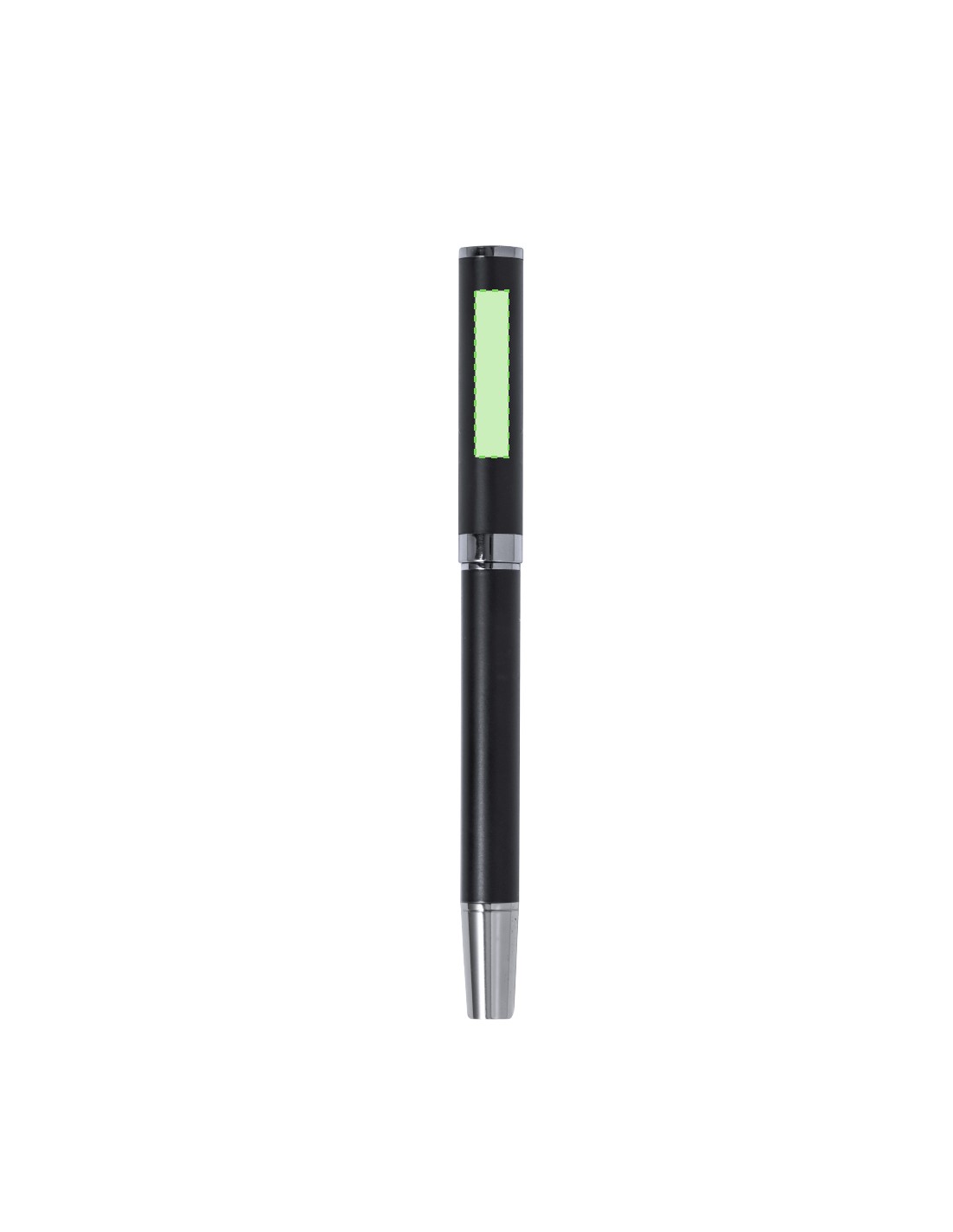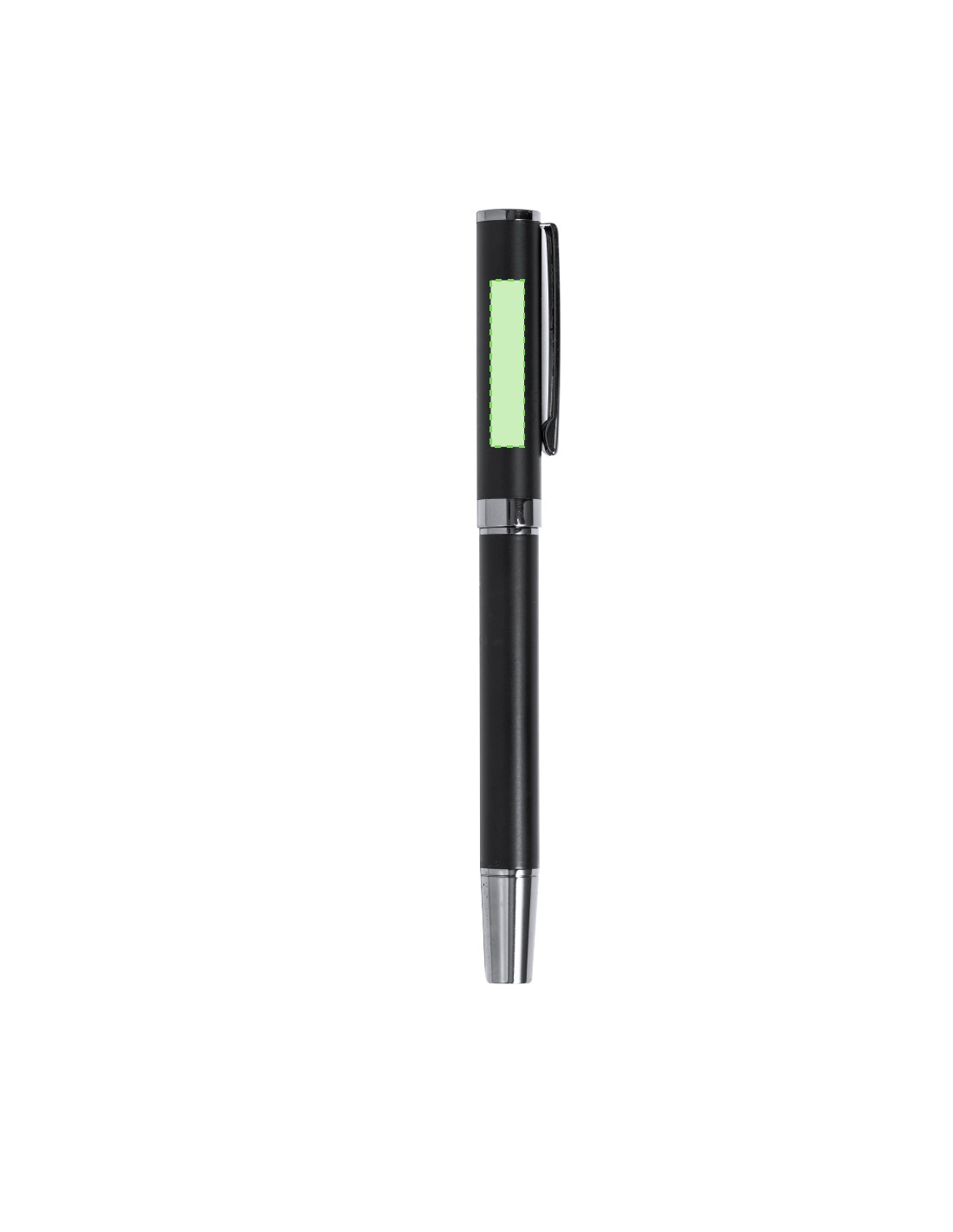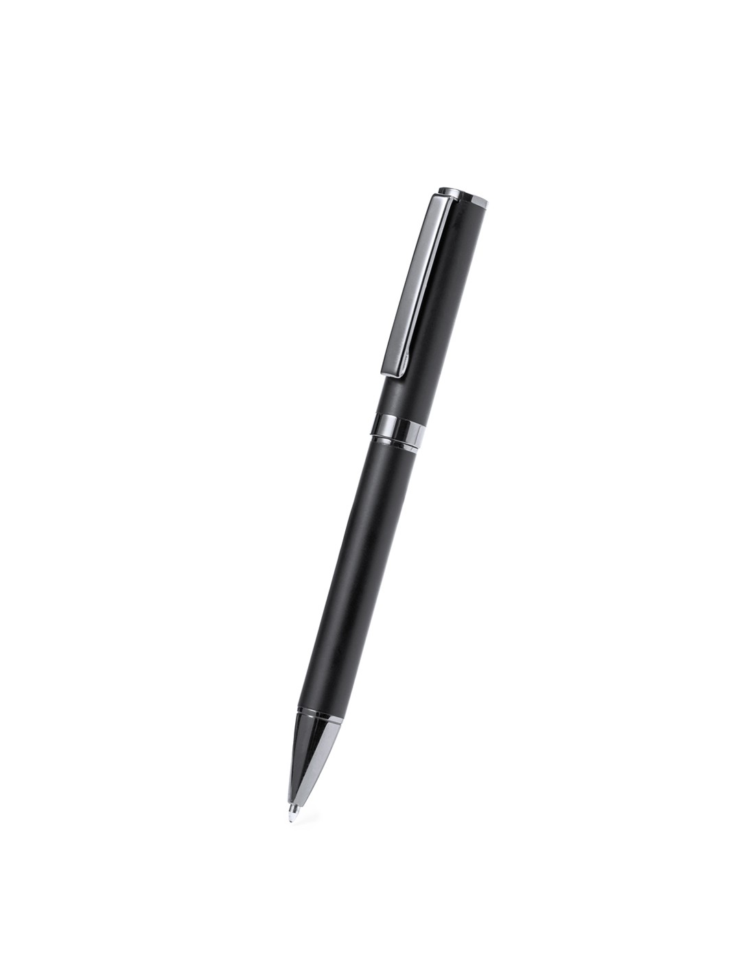 Elegante set de bolígrafo y roller. Bolígrafo de mecanismo giratorio y roller con capucha, ambos provistos de un clip metálico. Con tinta azul, su cuerpo presenta un elegante acabado negro mate y sutiles detalles cromados. Presentados en un estuche kraft negro, con interior troquelado en tacto de terciopelo.