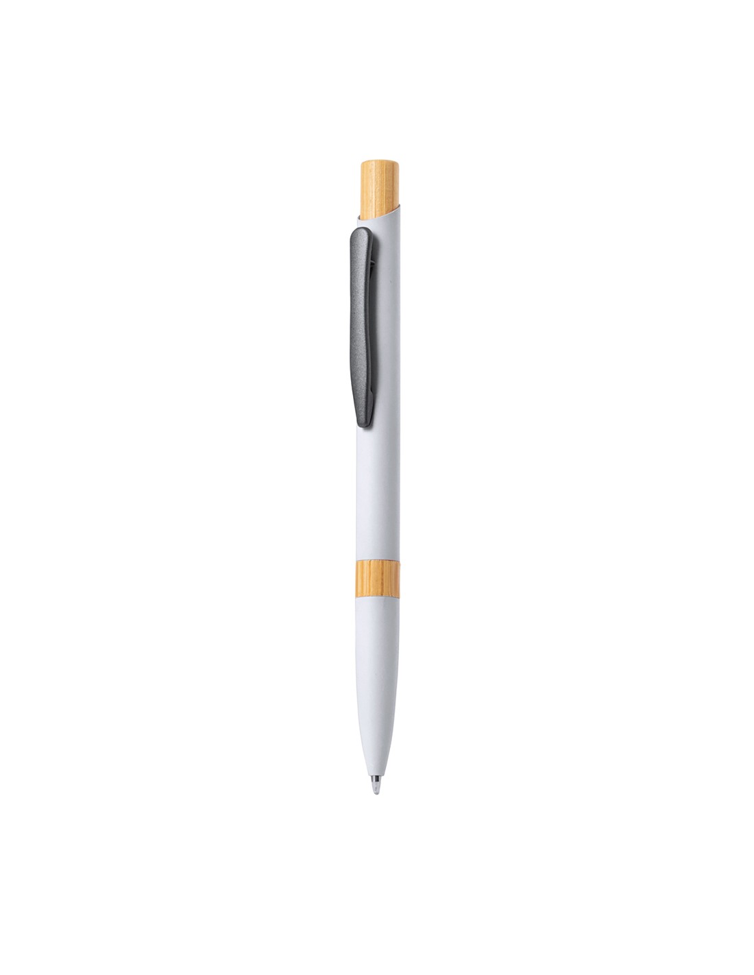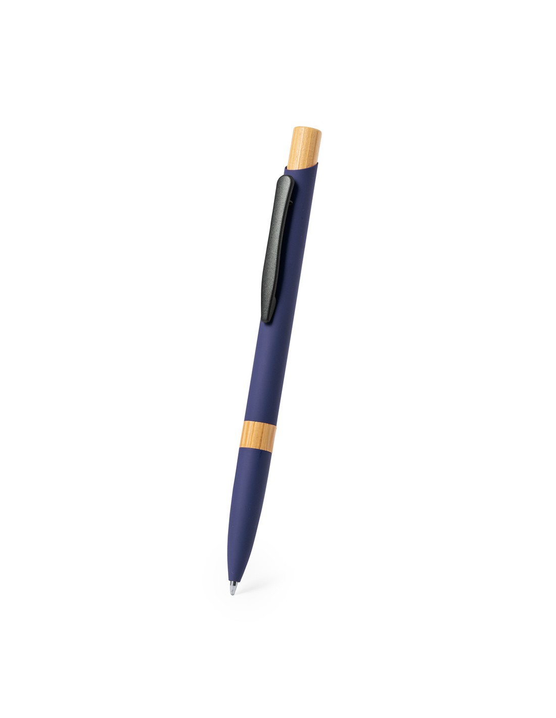 Elegante bolígrafo de aluminio con mecanismo pulsador. Cuerpo en resistente aluminio de acabado goma mate y con detalles en bambú, con caña en una amplia gama de distintivos colores. Clip metálico, de carga jumbo y en tinta azul. Presentado en bolsa individual reciclada.Materiales como el bambú fomentan la utilización de materias primas naturales, reduciendo las emisiones contaminantes. Proviene de una planta de gran resistencia y versatilidad, con crecimiento y regeneración rápidos, siendo una excelente alternativa al uso de madera tradicional.