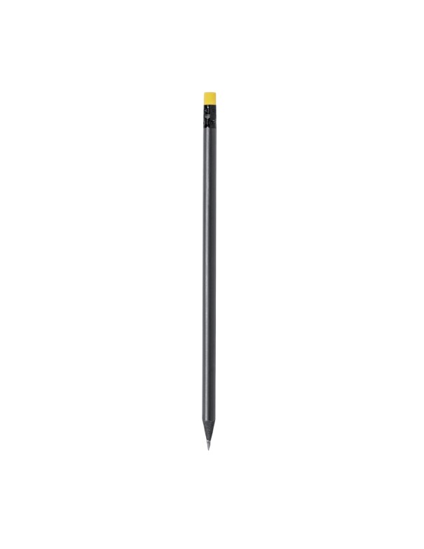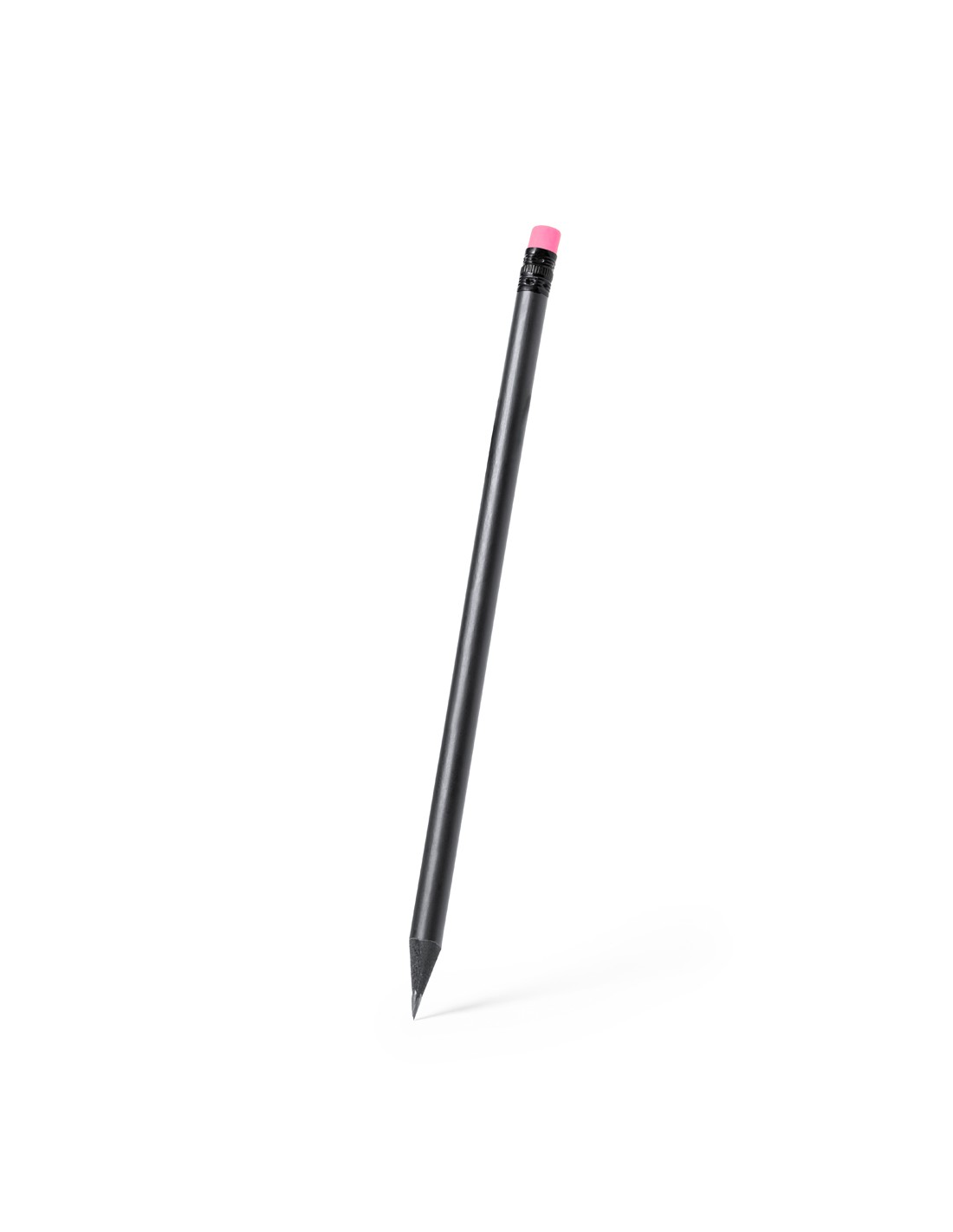 Elegante lápiz de color negro fabricado en madera natural, con práctica goma y disponible en diversos colores. Con mina negra y punta afilada.