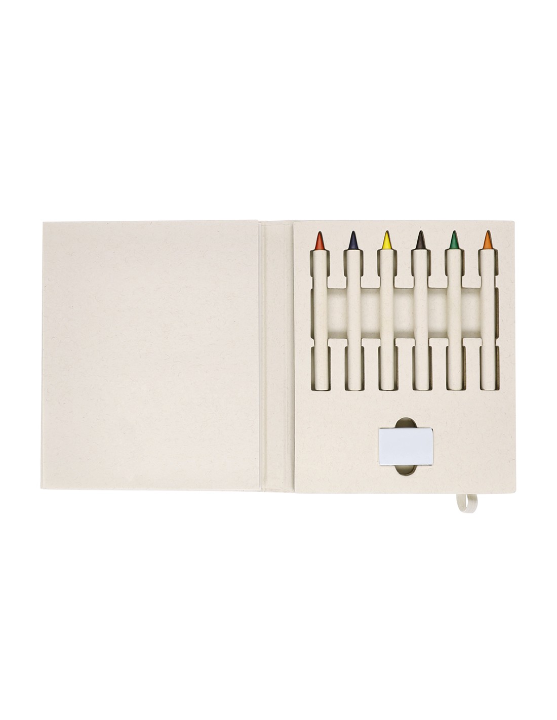 Set de lápices de colores eternos, fabricado con Cartones de Leche Reciclados. Incluye 6 diferentes colores, goma de borrar y bloc de notas con 50 hojas lisas. Con práctico elástico de cierre y distintivo de Cartones de Leche Reciclados.Los Cartones de Leche se componen en su mayor parte de cartón y aluminio. Durante su proceso de reciclado, se separan los distintos materiales del envase para su reutilización y nuevo uso, contribuyendo así a recorrer el camino infinito de la economía circular. Este material se caracteriza por su alto grado de reciclabilidad, así como por su ligereza y resistencia.