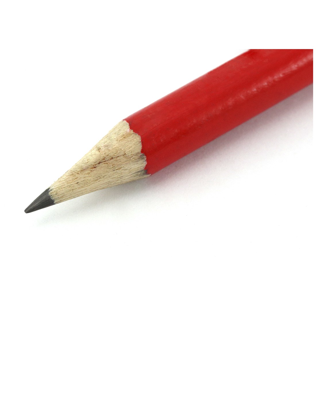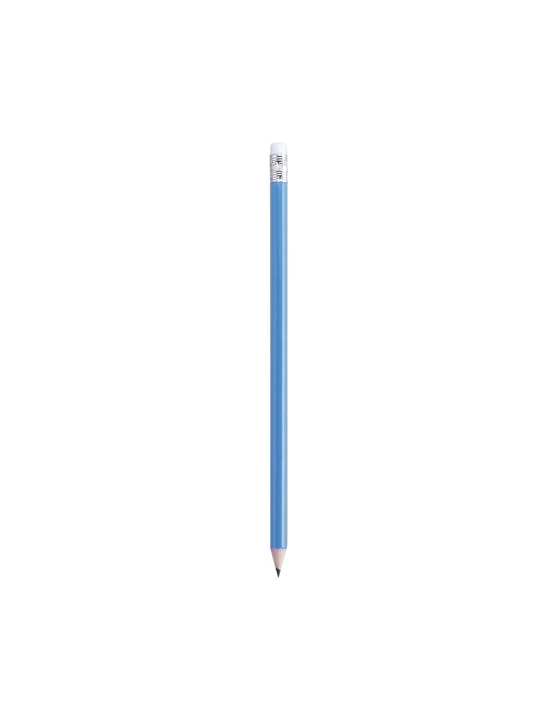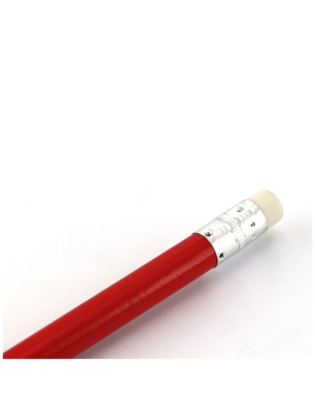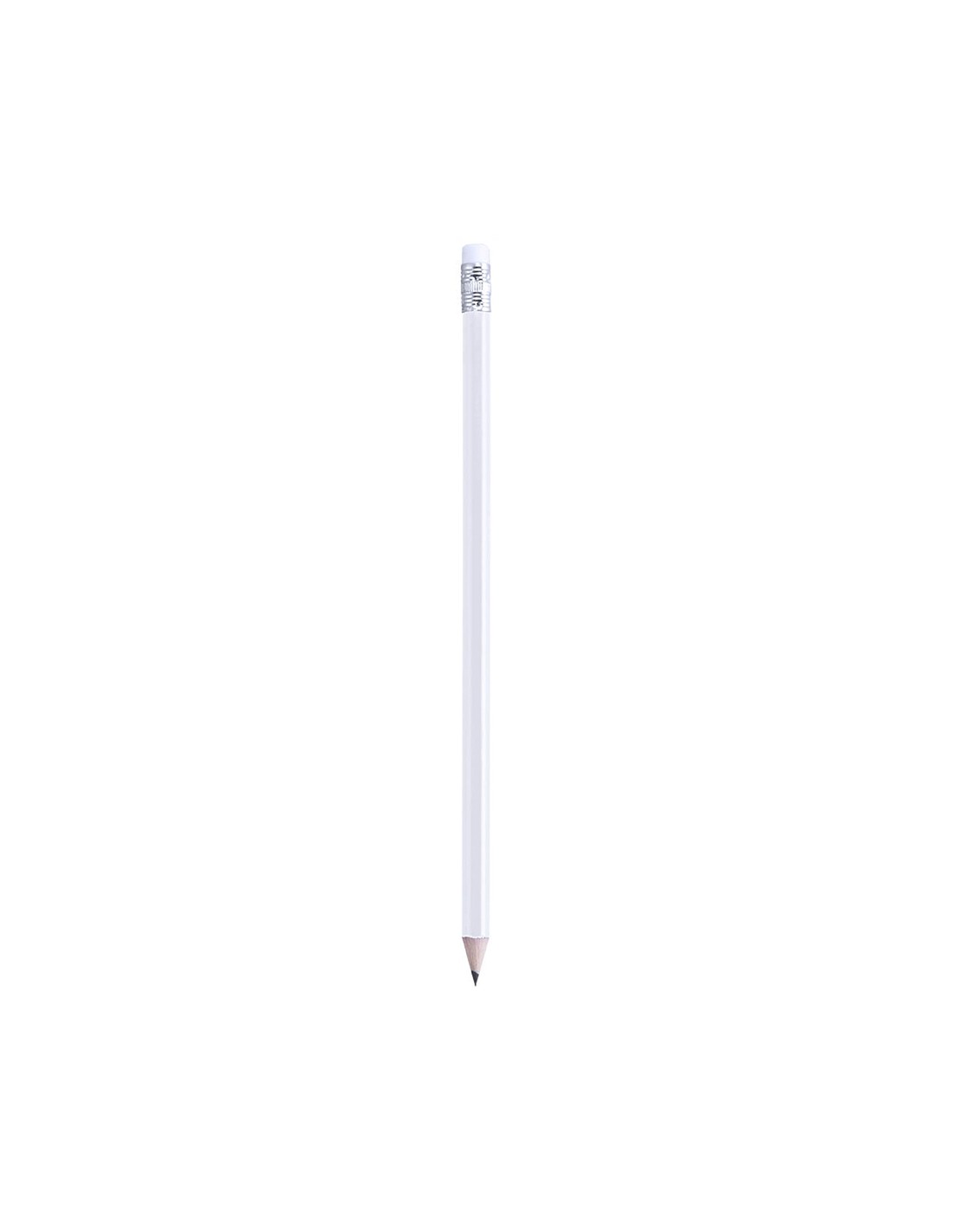 Lápiz de madera de acabado brillo. Con cuerpo redondo y goma de borrar en color blanco. Disponible en variada gama de colores. Mina negra y punta afilada.