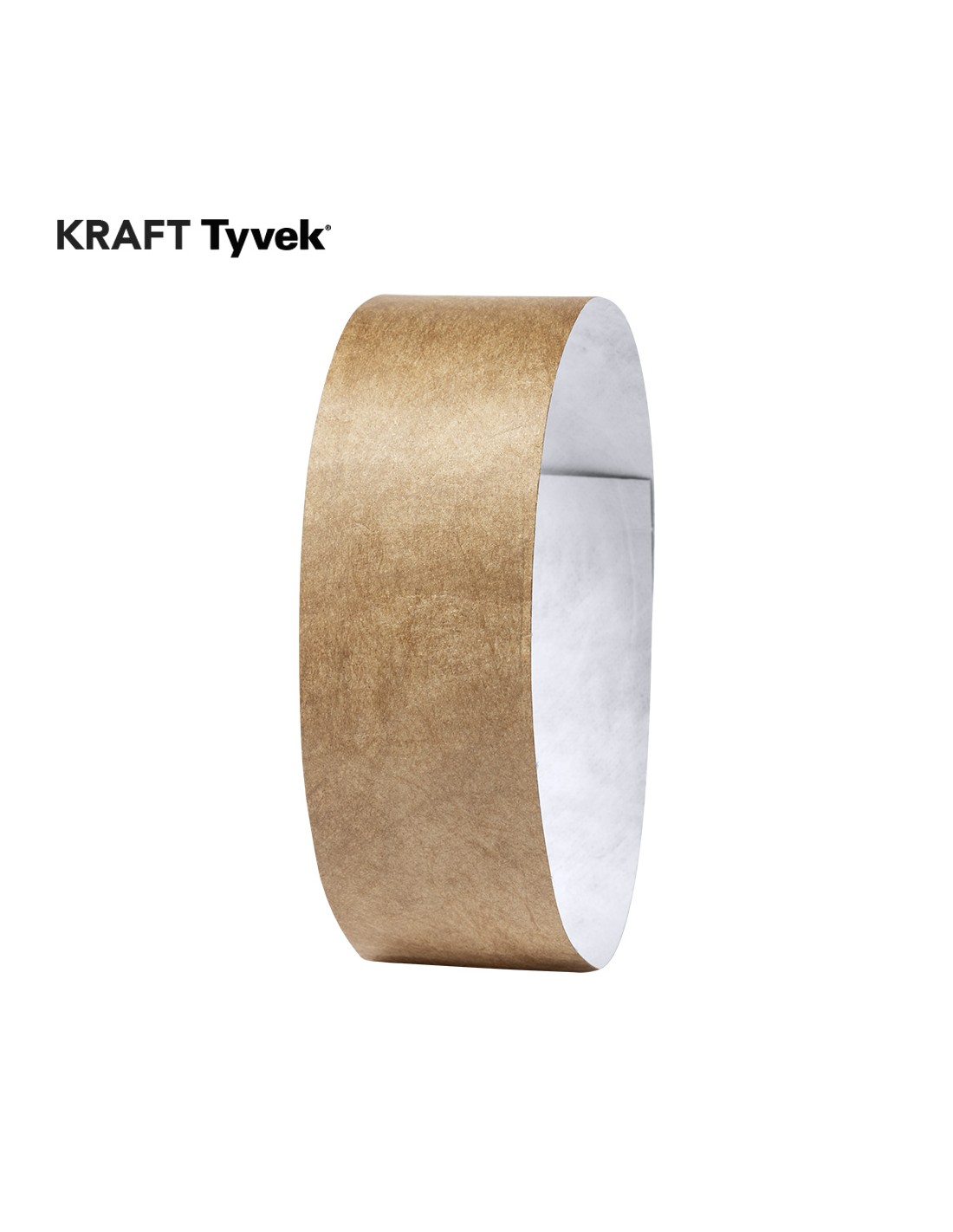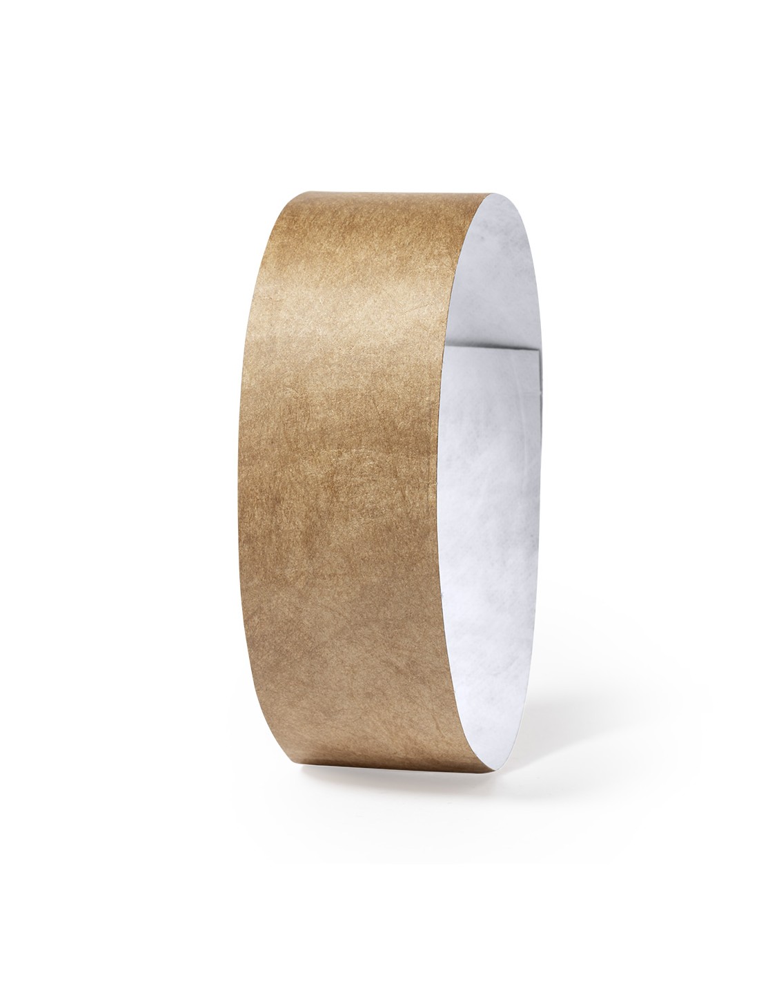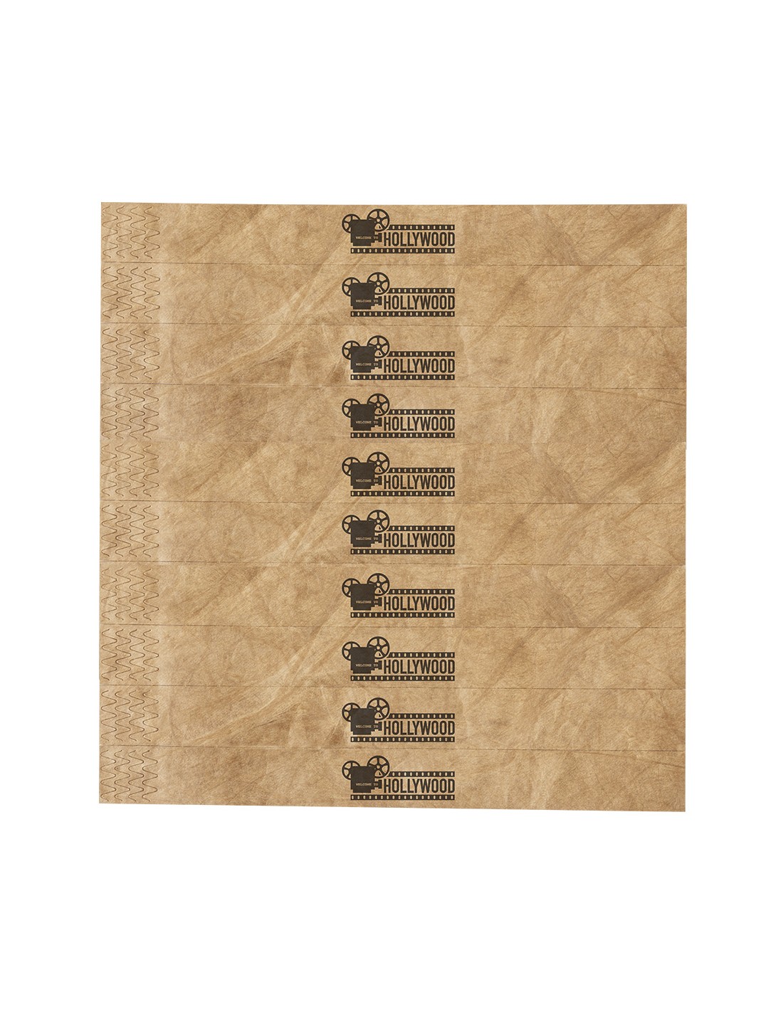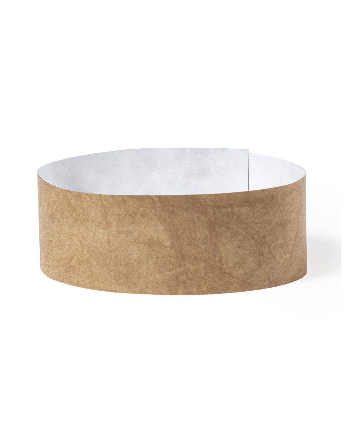 Pulsera para eventos de acabado nature. Fabricada en fibra sintética Tyvek, que destaca especialmente por su resistencia, flexibilidad, durabilidad y facilidad para la impresión. Con cierre adhesivo, talla única para adulto. Resistente al agua. Presentada en plancha troquelada de 10 piezas con numeración individual.