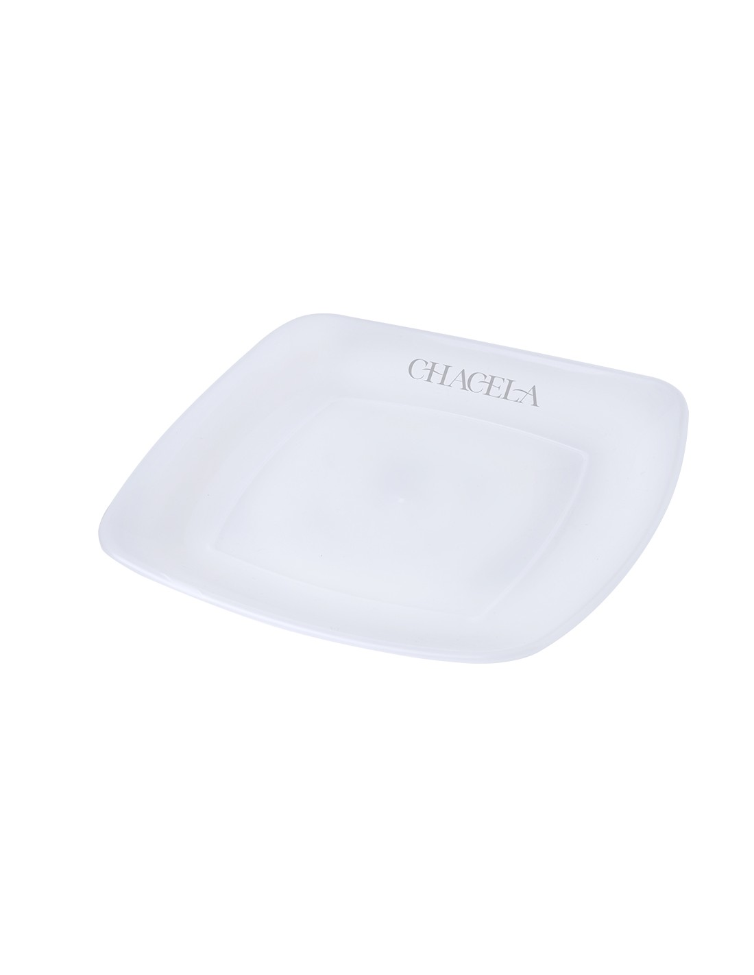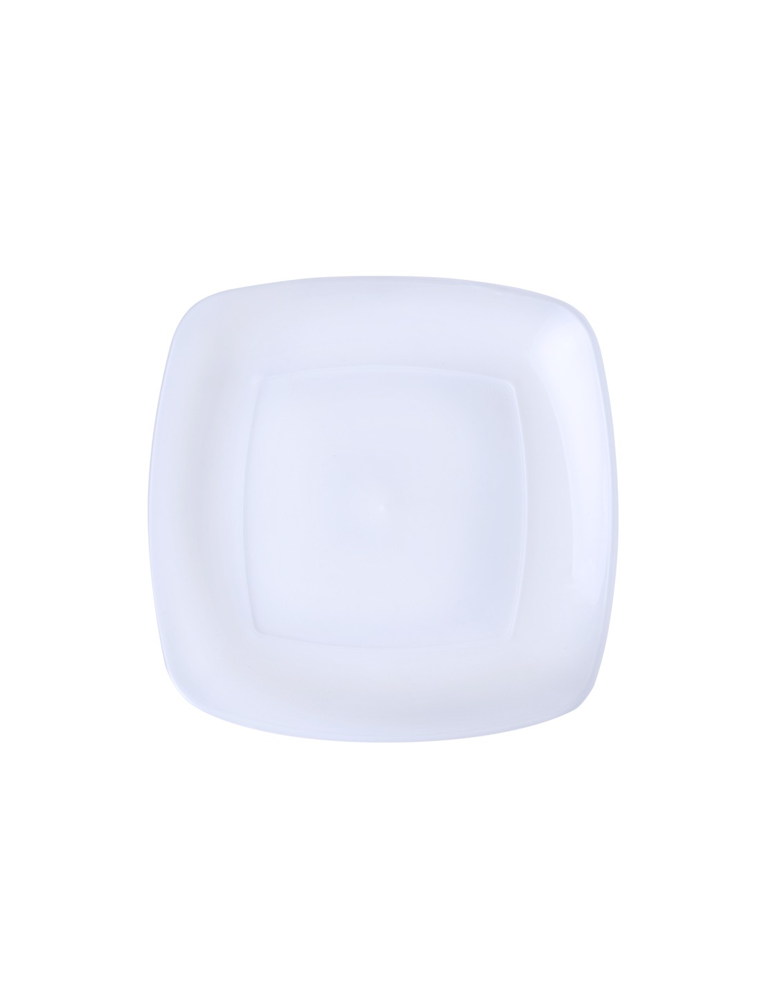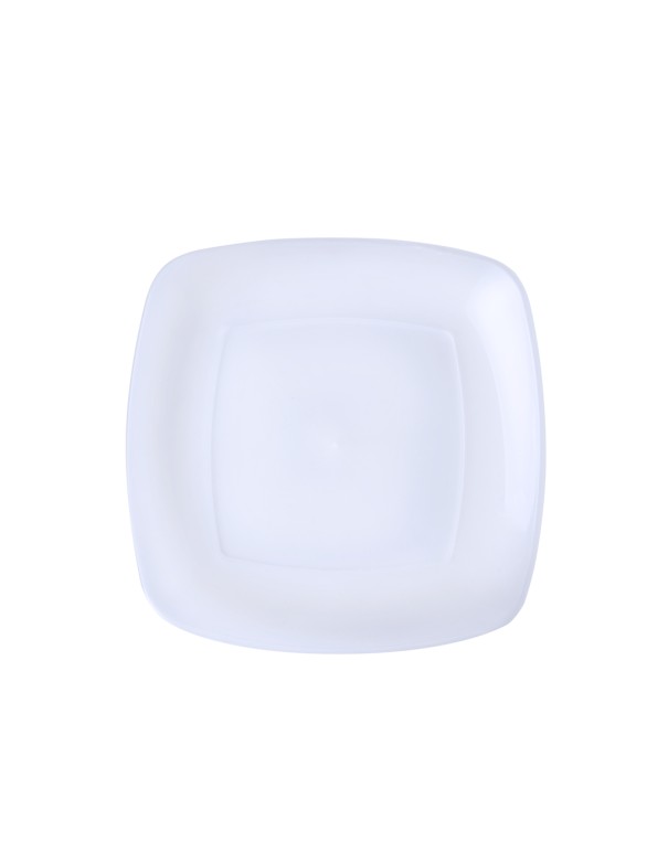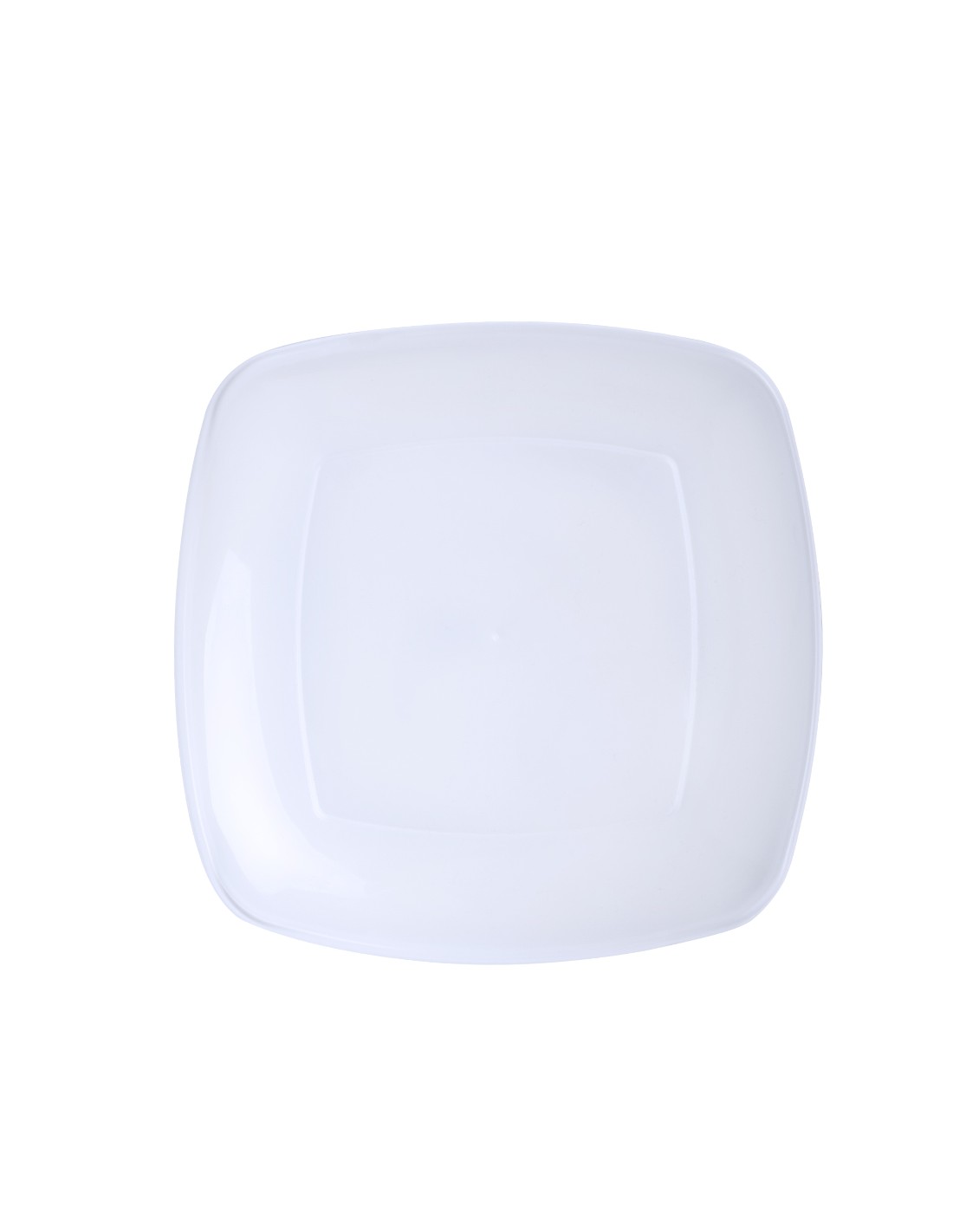 Plato plano en resistente y flexible material PP. Reutilizable y en acabado translúcido cuadrado.