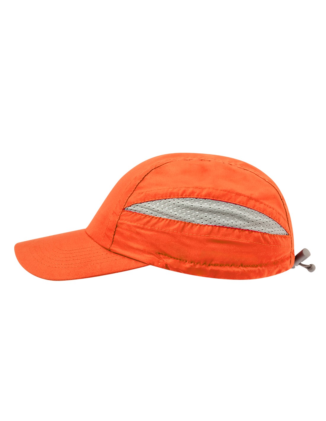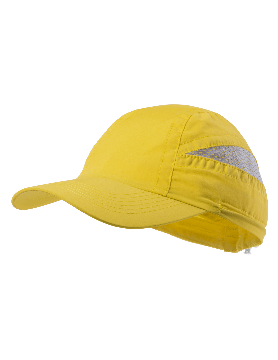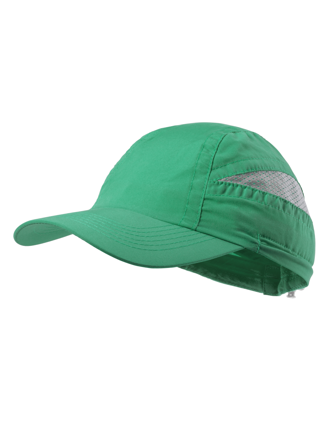 Gorra deportiva de 7 paneles en suave microfibra de diseño bicolor en vivos colores. Cierre elástico con accesorio de ajuste y paneles de redecilla para el sudor.