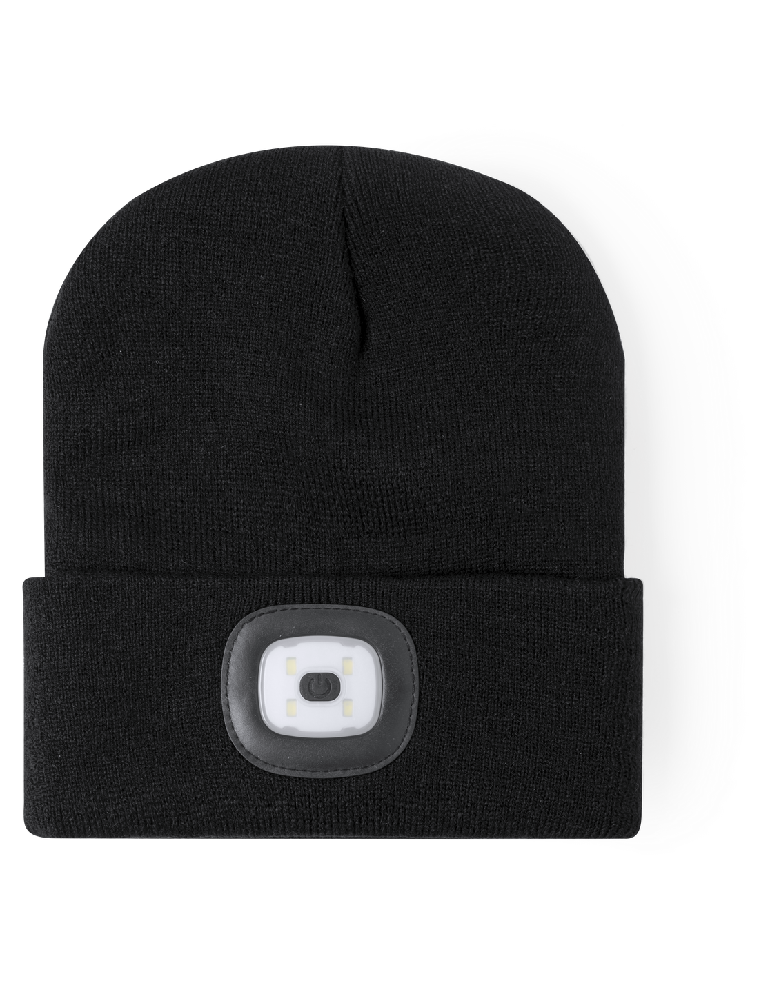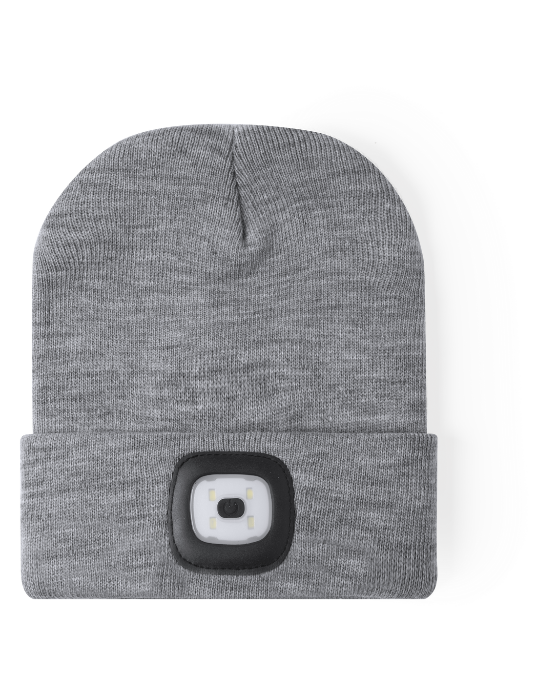 Gorro deportivo de doble capa con indicadores luminosos integrados que ofrecen 4 modos diferentes de iluminación LED. En suave y confortable material acrílico.