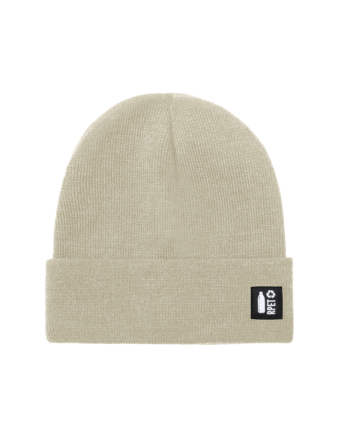 Suave y cálido gorro de punto de línea nature y en poliéster RPET, elaborado a partir de plástico reciclado para así fomentar la reutilización de residuos plásticos y contribuir a la sostenibilidad del planeta. Con dobladillo en frontal y disponible en variada gama de colores. Distintivo RPET en etiqueta exterior.
