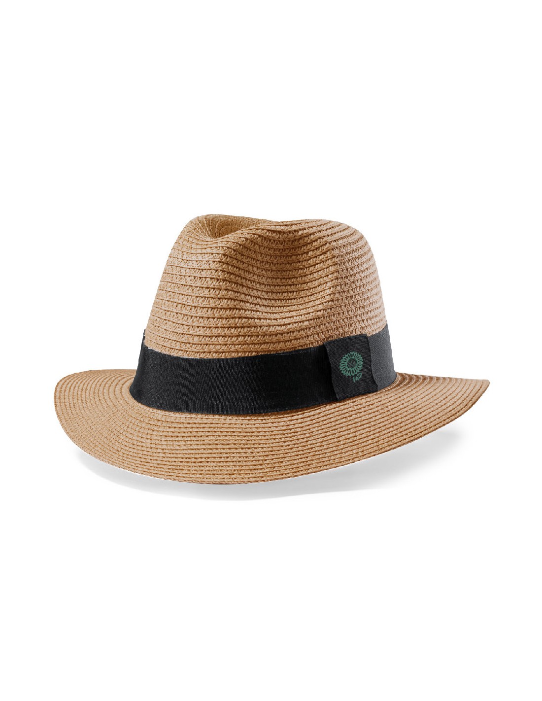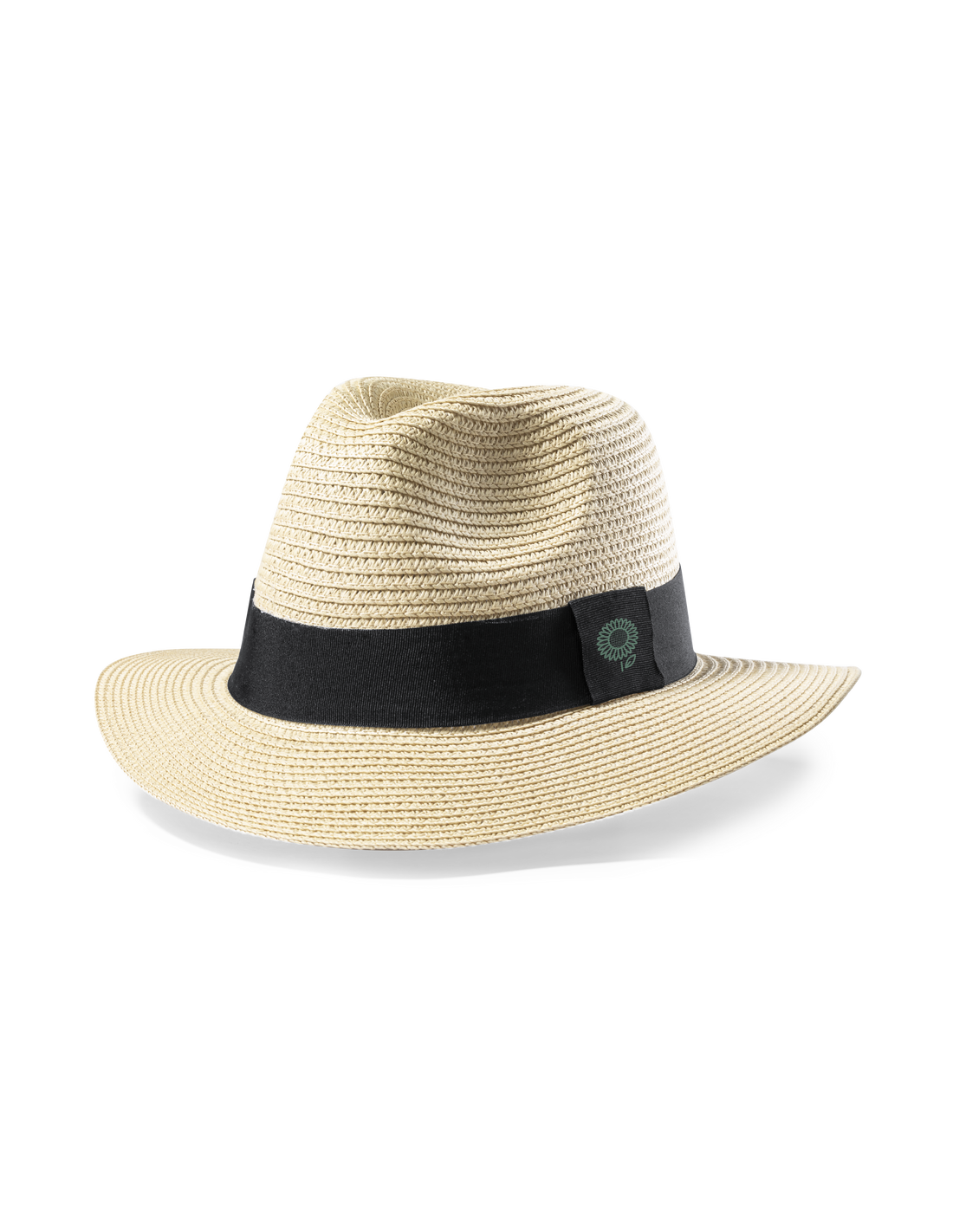 Sombrero de ala ancha y alta calidad en material sintético, con acabado natural. Ajustable desde el interior, con cinta exterior y confortable cinta interior. Disponible en variada gama de colores.