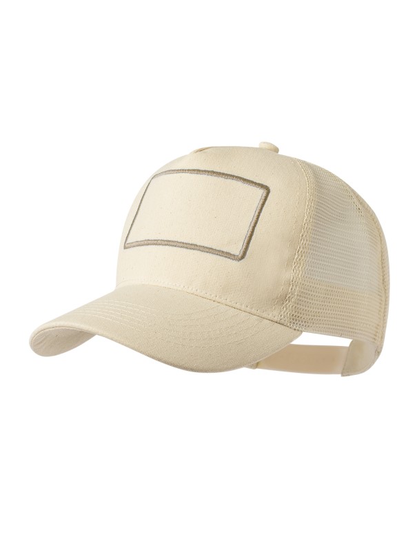 Gorra de 5 paneles tipo trucker fabricada en resistente poliéster RPET. Con marco frontal cosido, parte trasera de redecilla y cierre ajustable de plástico a juego en color natural. Con etiqueta distintiva de RPET. El material RPET se elabora a partir de plástico reciclado, para así fomentar la reutilización de residuos plásticos y ayudar a la sostenibilidad del planeta.
