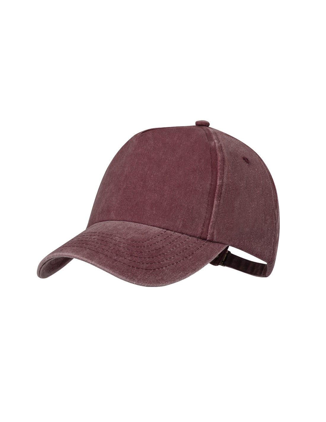 Gorra de 5 paneles de acabado efecto lavado. Fabricada en suave algodón 100%, con orificios de ventilación bordados. Con cierre trasero ajustable de hebilla metálica y disponible en variada gama de colores naturales.
