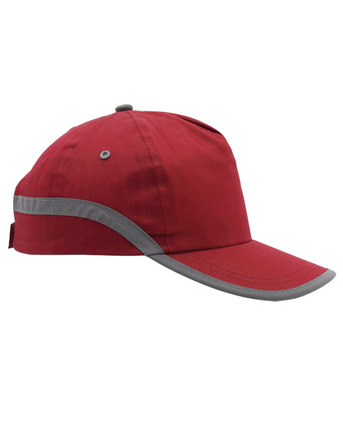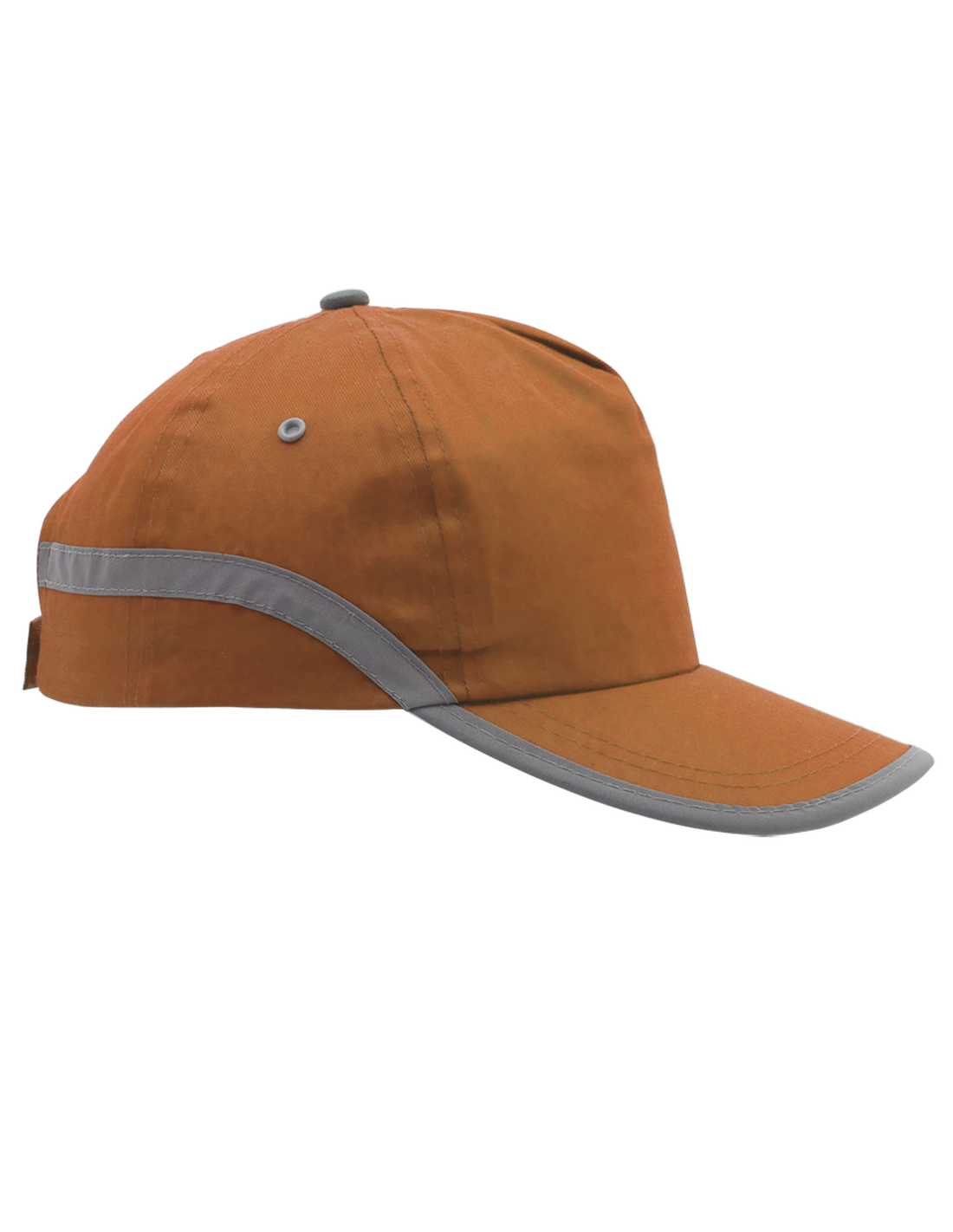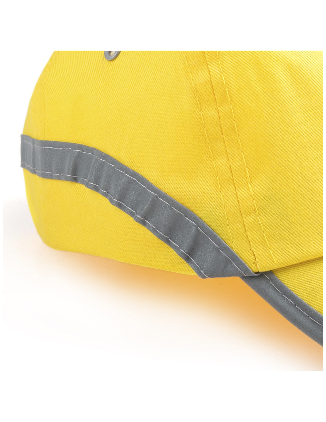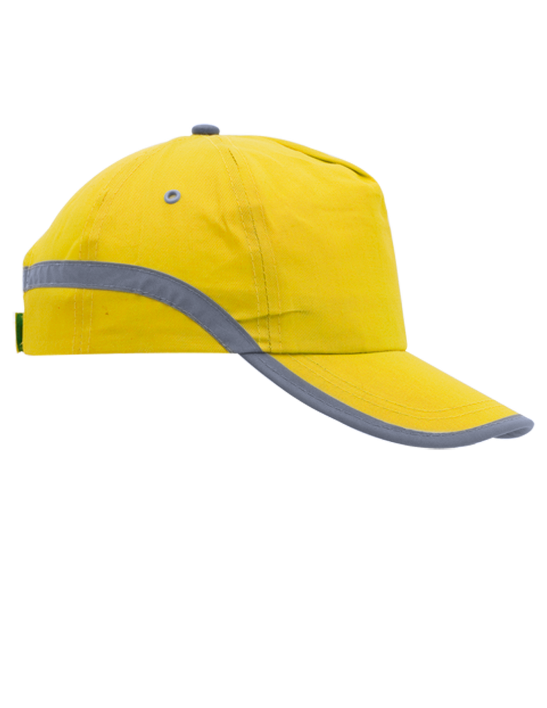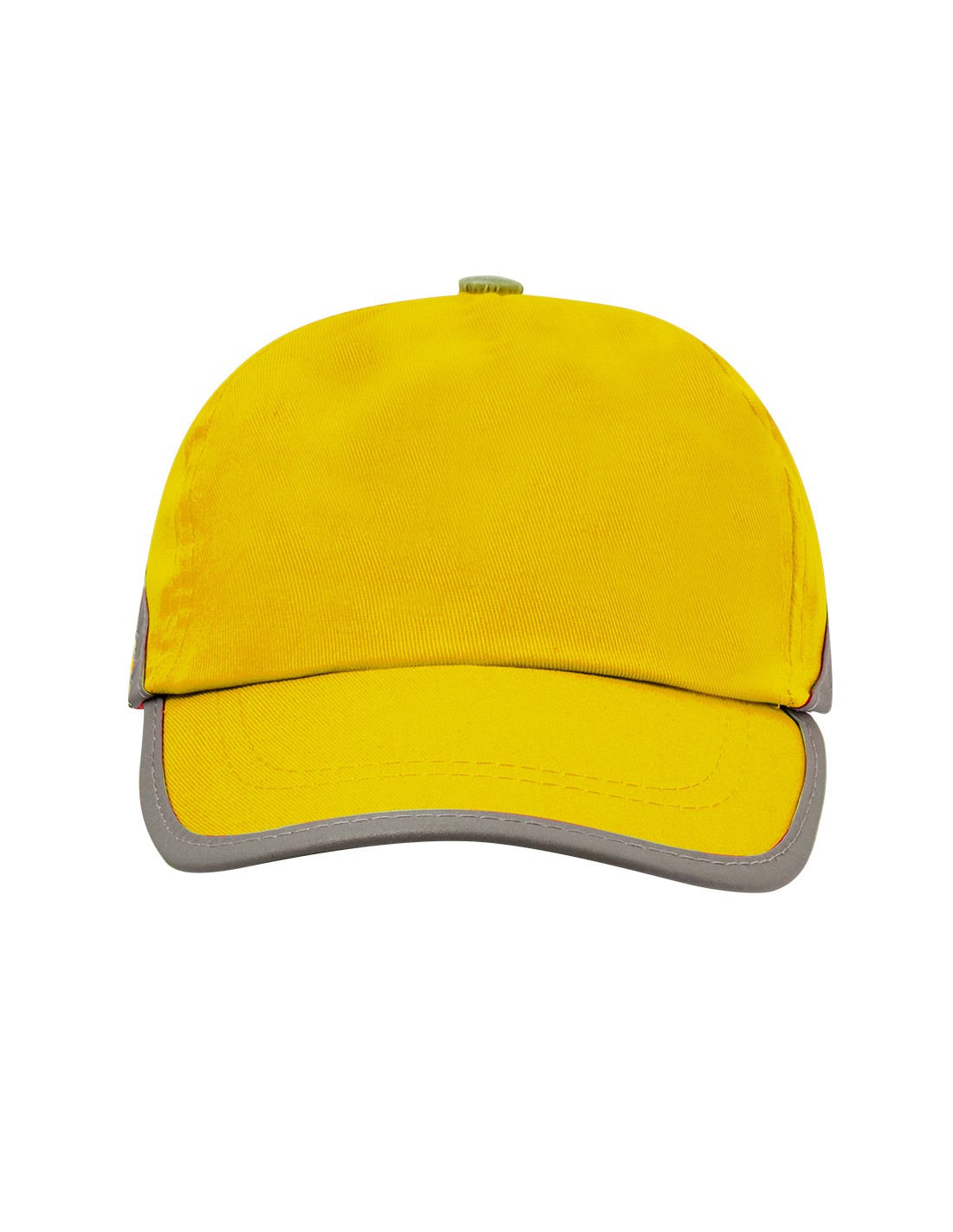 Gorra de 5 paneles en material 100% algodón y tira reflectante en visera y cuerpo. En variada gama de vivo colores, con orificios de ventilación bordados y cierre ajustable de velcro.