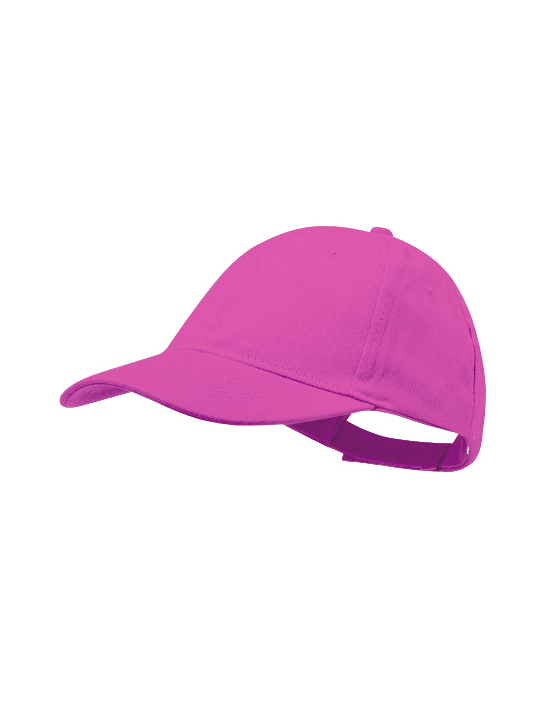 Gorra de 6 paneles en material 100% algodón peinado. En variada gama de vivos colores y con acolchado en visera. Orificios de ventilación bordados y cierre ajustable de velcro.