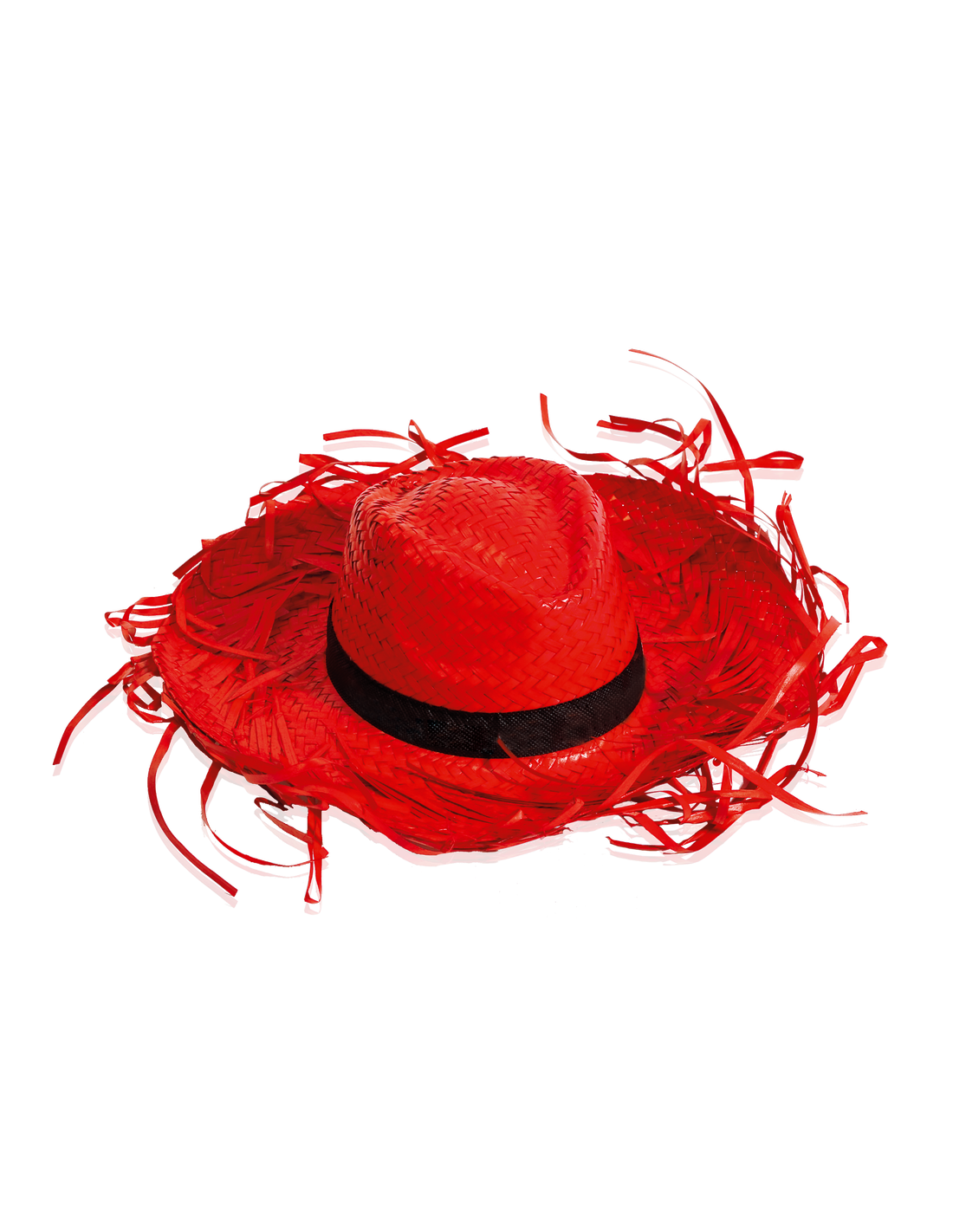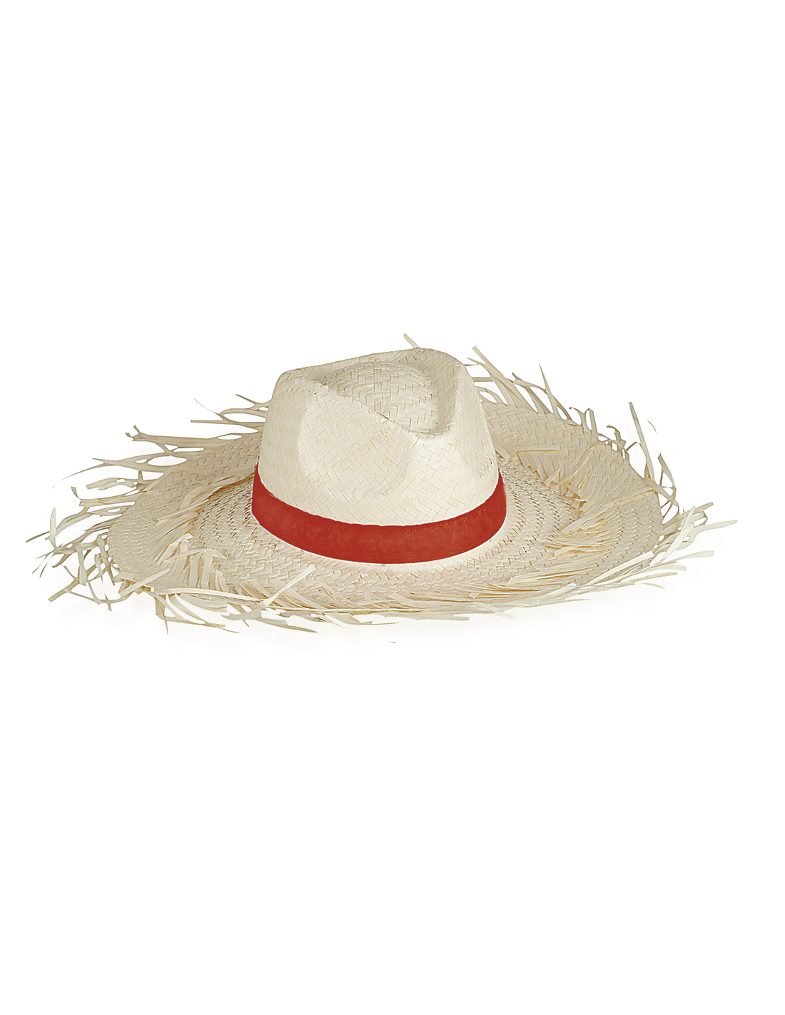 Sombrero de paja en color blanco con confortable cinta interior y terminación en flecos filagarchados.