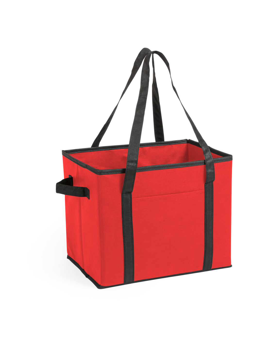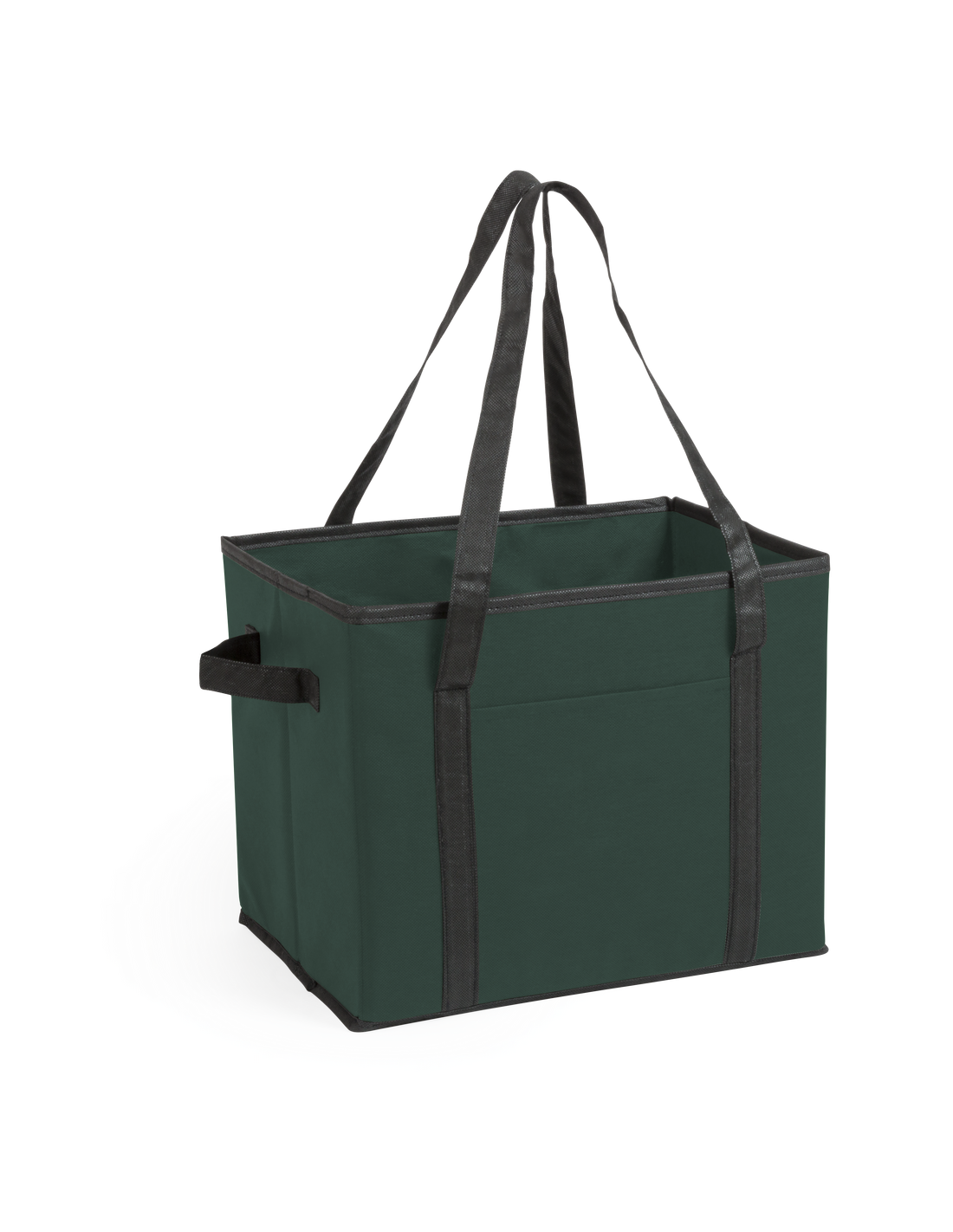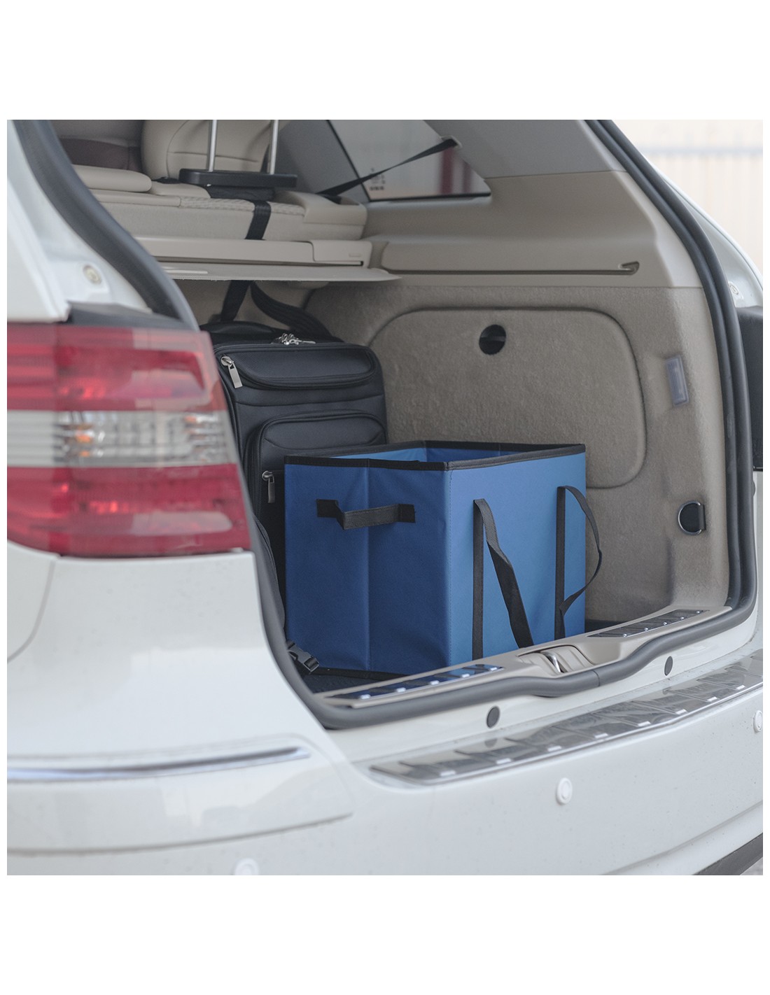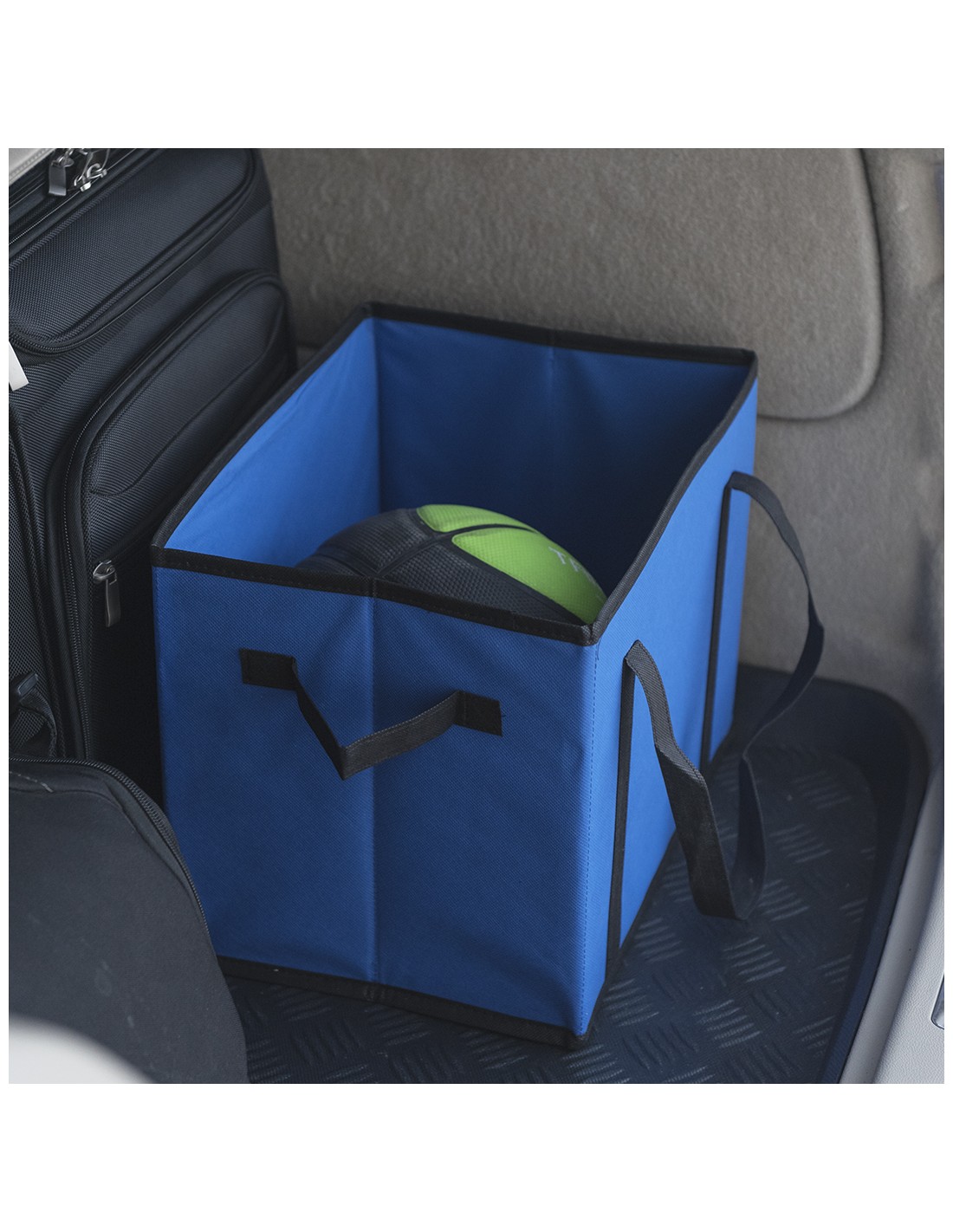 Organizador plegable para el maletero del coche en resistente non-woven de vivos colores. Con asas de transporte reforzadas, asa lateral, bolsillo frontal y base rígida para un firme ajuste.