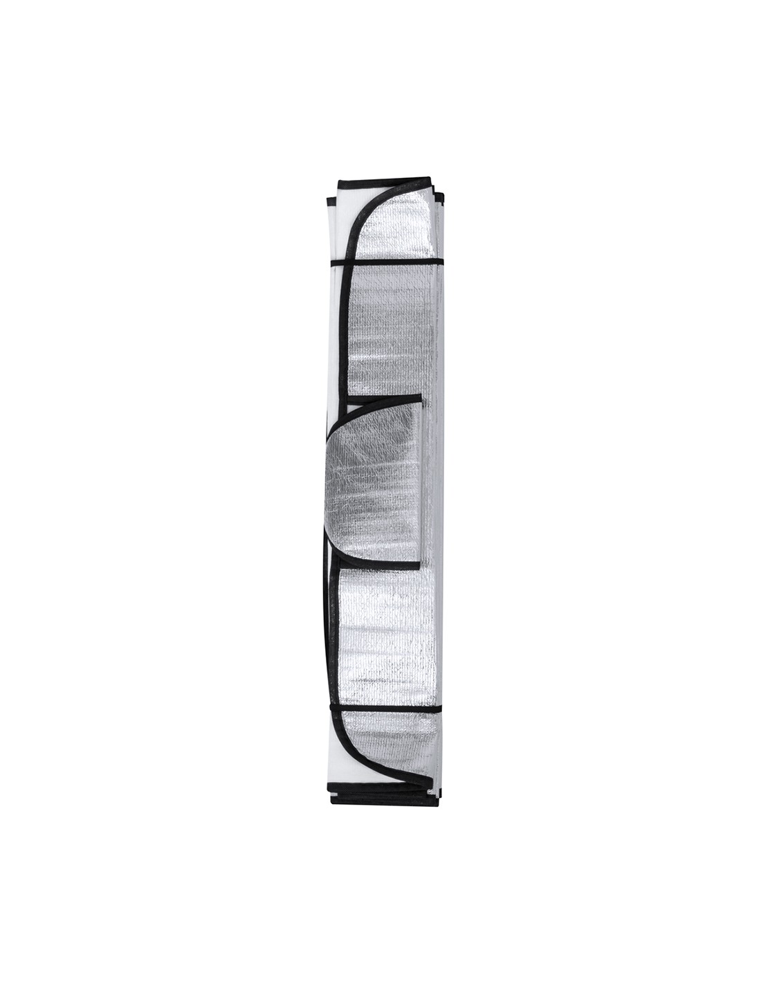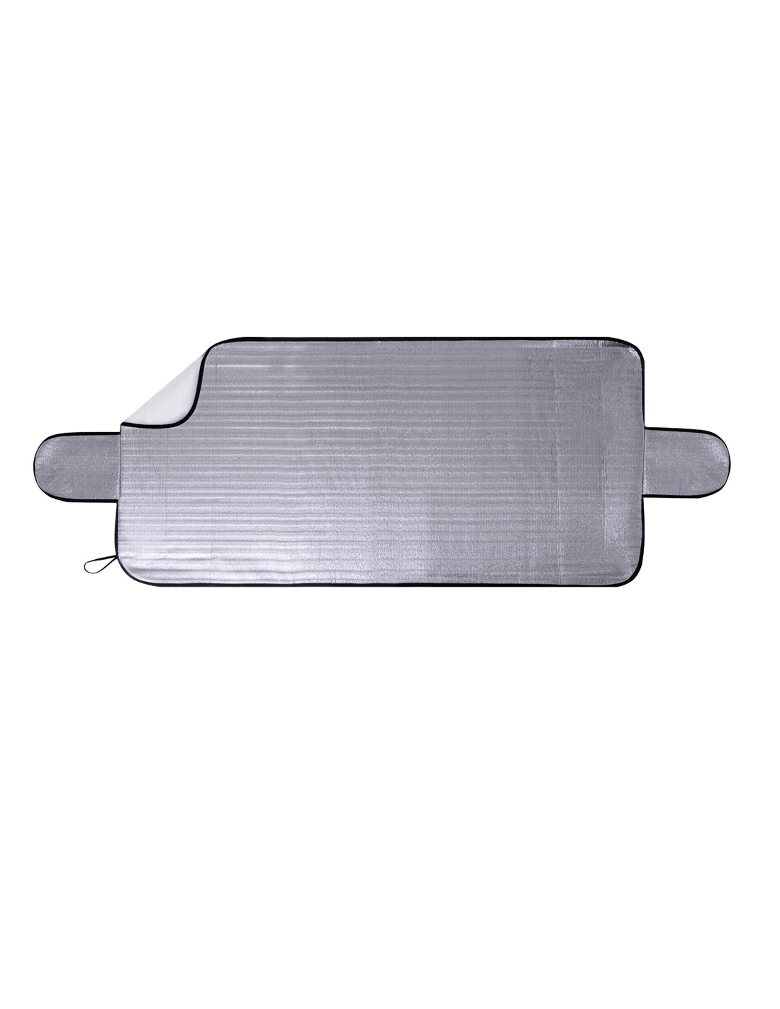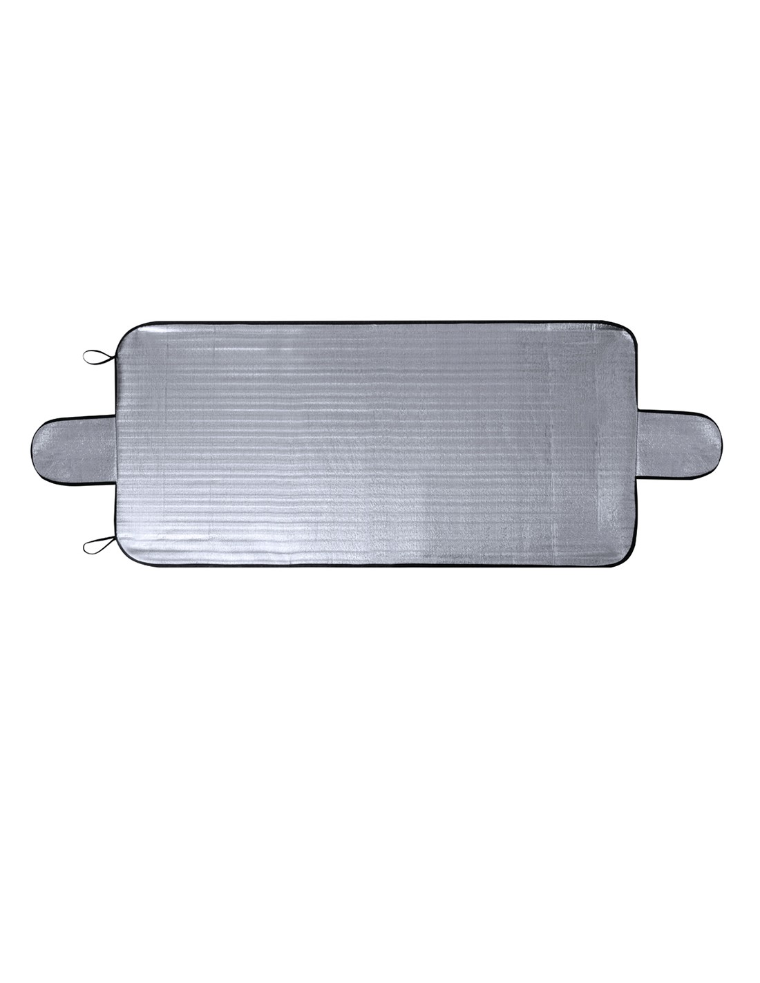 Resistente parasol de aluminio en una cara, diseñado para situarlo en el exterior de la luna delantera y como protección ante fenómenos adversos como la nieve. Incluye dos solapas laterales que se ajustan entre el marco y las puertas del vehículo, proporcionando un aislamiento adicional a la luna delantera. Enrollable y con gomas para un fácil almacenamiento.Presentado en bolsa individual reciclada.