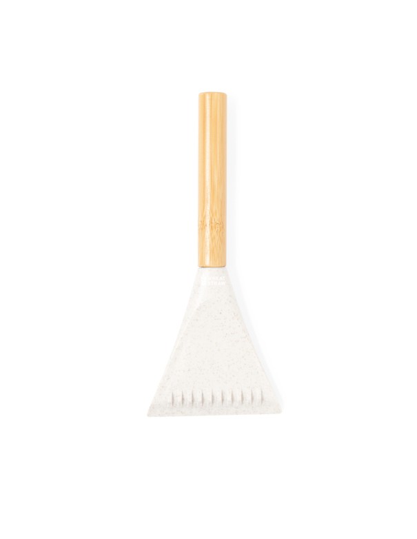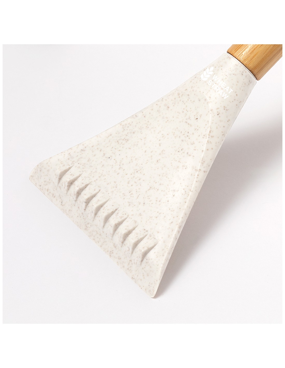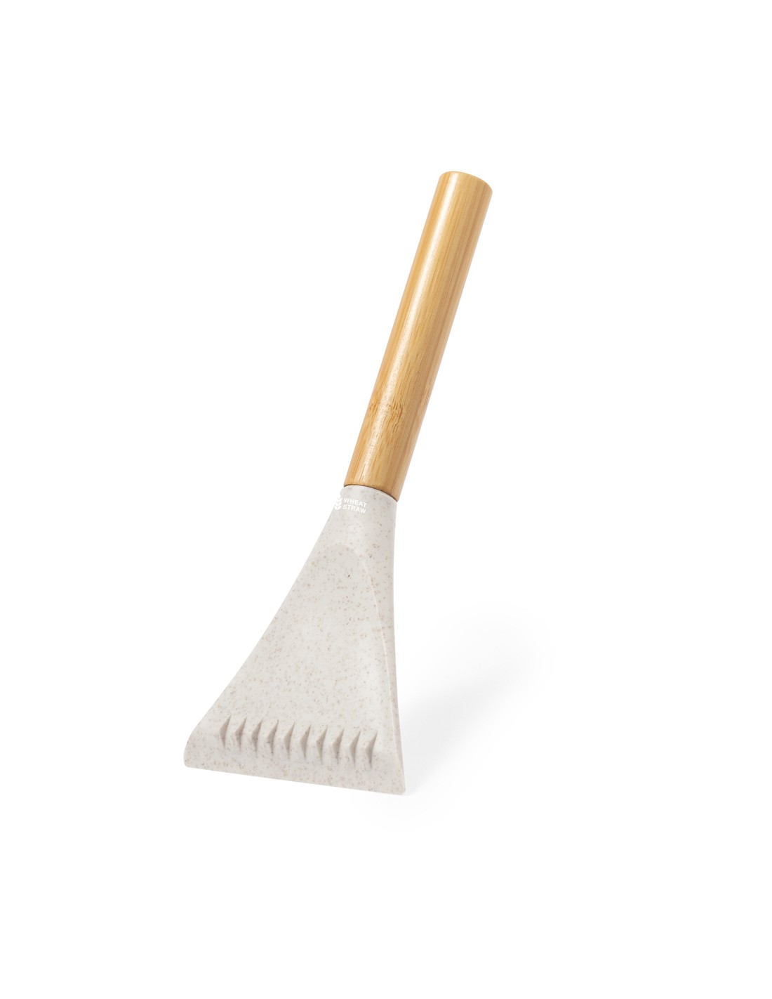 Práctico rascador de hielo fabricado en bambú y caña de trigo. Con forma de pala, su mango está fabricado en bambú y la zona de rascado está hecha de caña de trigo, con parte limpiadores y sierra integrada. Logo ditintivo en el mango y presentado individualmente en bolsa de papel kraft.Materiales como el bambú fomentan la utilización de materias primas naturales, reduciendo las emisiones contaminantes. Proviene de una planta de gran resistencia y versatilidad, con crecimiento y regeneración rápidos, siendo una excelente alternativa al uso de madera tradicional.La caña de trigo fomenta la utilización de materias primas naturales, reduciendo así las emisiones contaminantes.