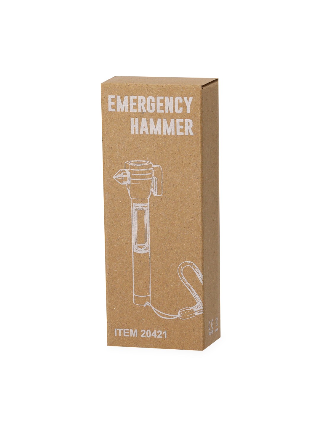 Versátil martillo de emergencia. Cuenta con tres funciones: una potente linterna con 6 luces COB alimentadas por pilas de botón (incluidas), una punta metálica rompecristales y una cuchilla cortacinturones. Zona imantada en parte superior y tira para una mejor sujeción. Presentado en caja individual kraft.