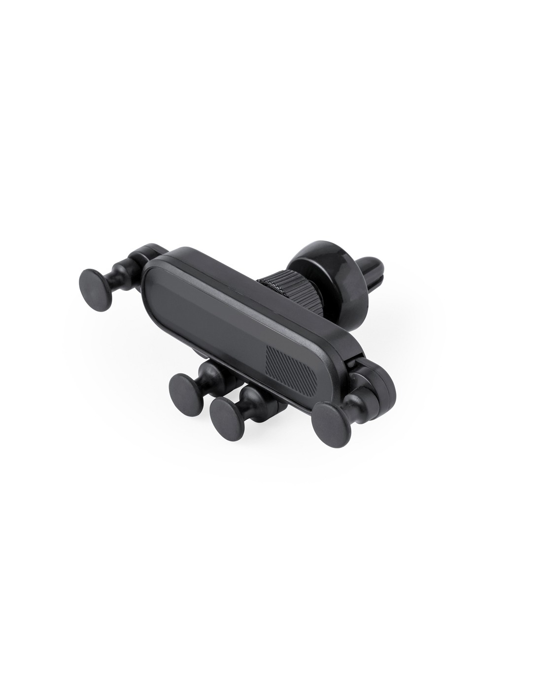 Ingenioso soporte para smartphone de diseño minimalista y especialmente diseñado para smartphones tamaño XXL. Con sistema de fijación universal que se adapta con el propio peso del teléfono, ajustando los enganches de agarre una vez se sitúa el dispositivo en el soporte. Para rejilla de ventilación del automóvil y con frontal especialmente diseñado para marcaje. Presentado en caja de diseño kraft.