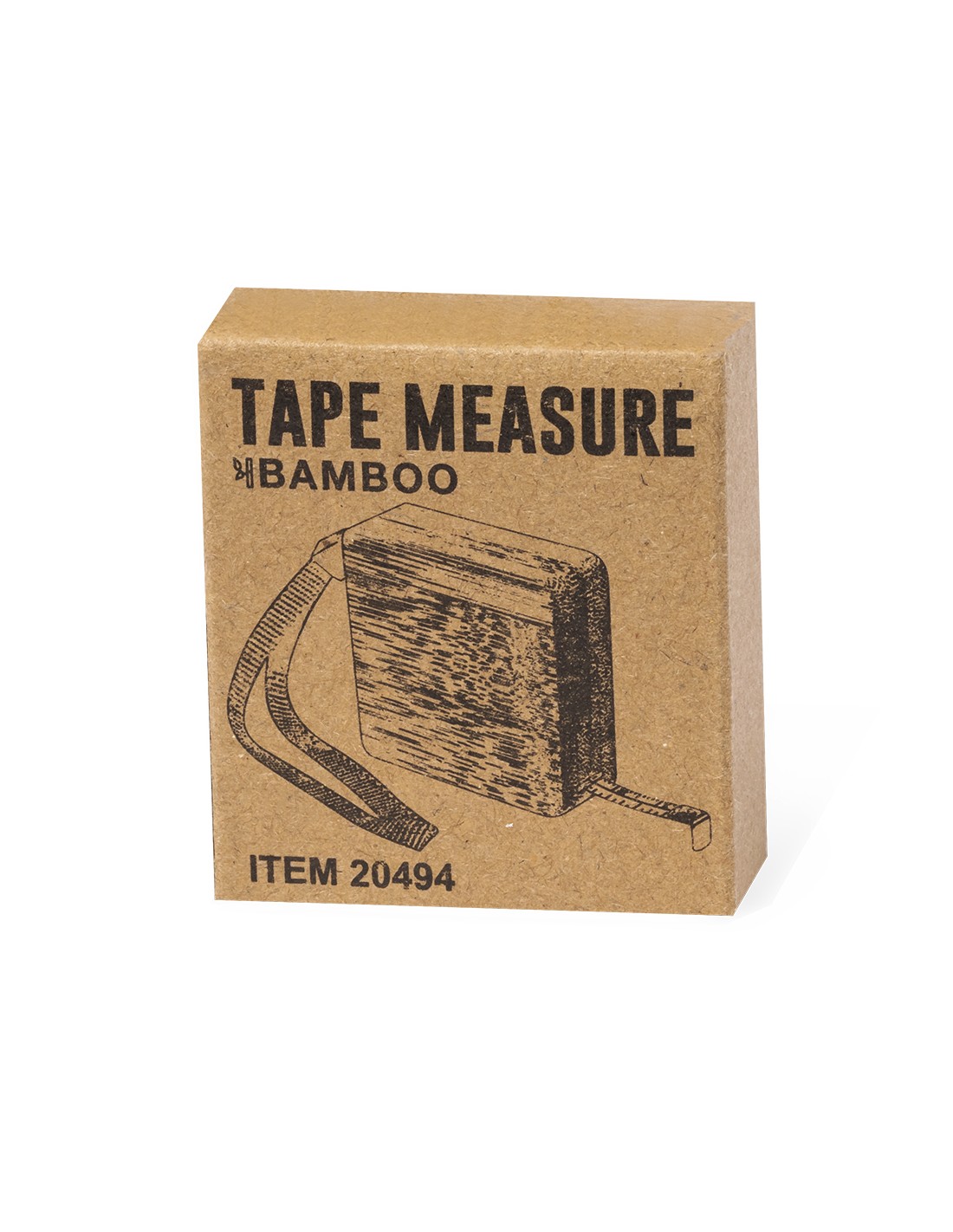 Flexómetro 1 m fabricado en bambú, con cuchilla metálica en centí metros y pulgadas. Con cinta para transporte y presentado en caja de diseño kraft. Materiales como el bambú fomentan la utilización de materias primas naturales reduciendo las emisiones contaminantes. Además, el bambú proviene de una planta de gran resistencia y versatilidad, con crecimiento y regeneración rápida, siendo una excelente alternativa al uso de madera tradicional.