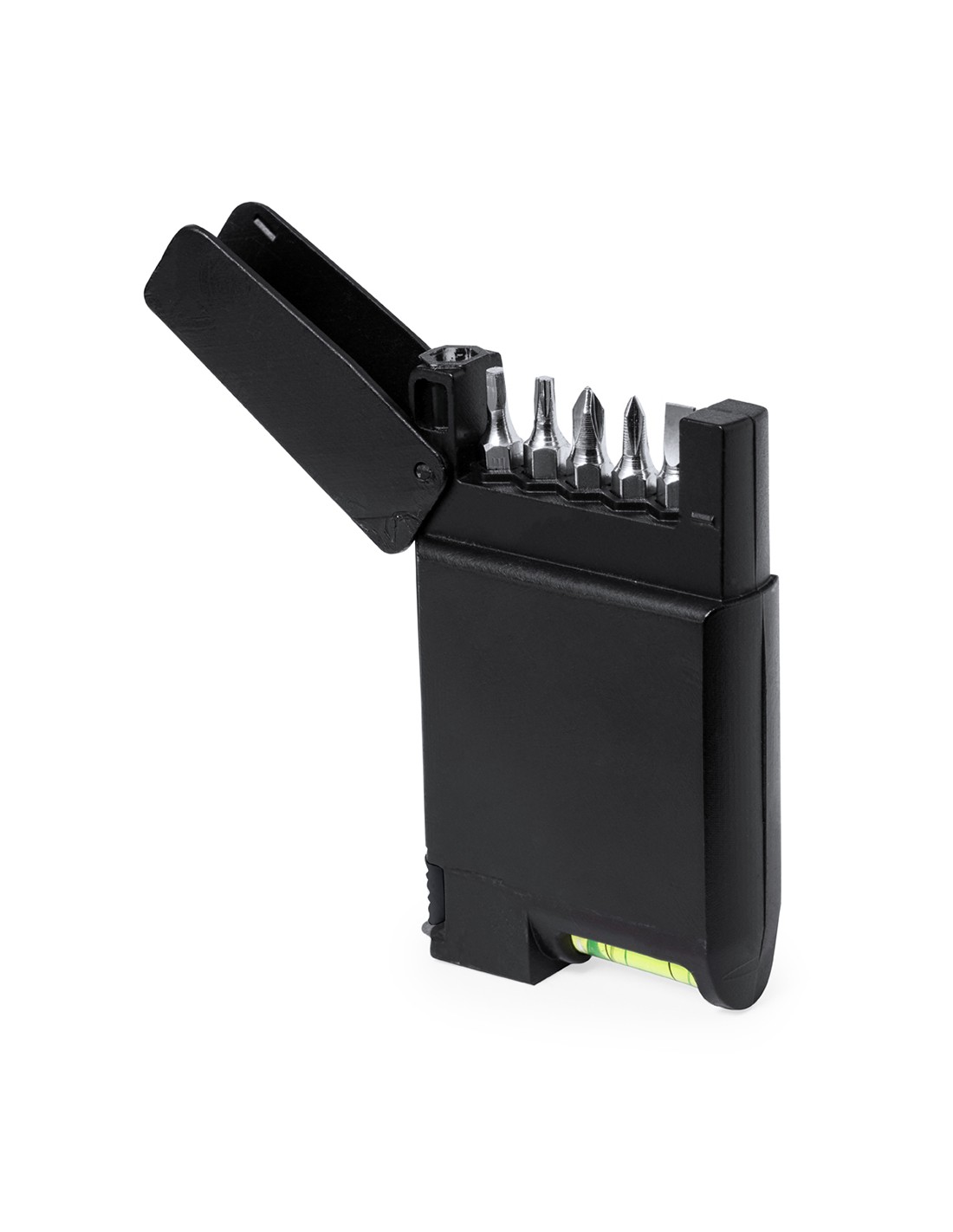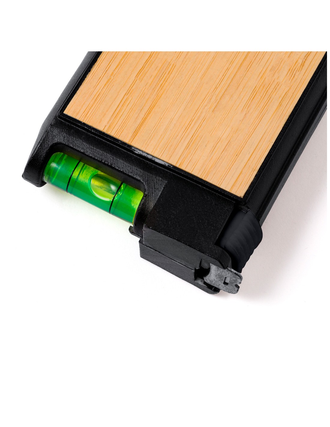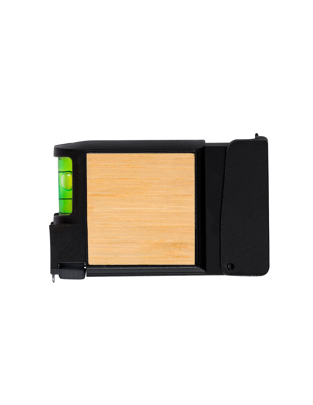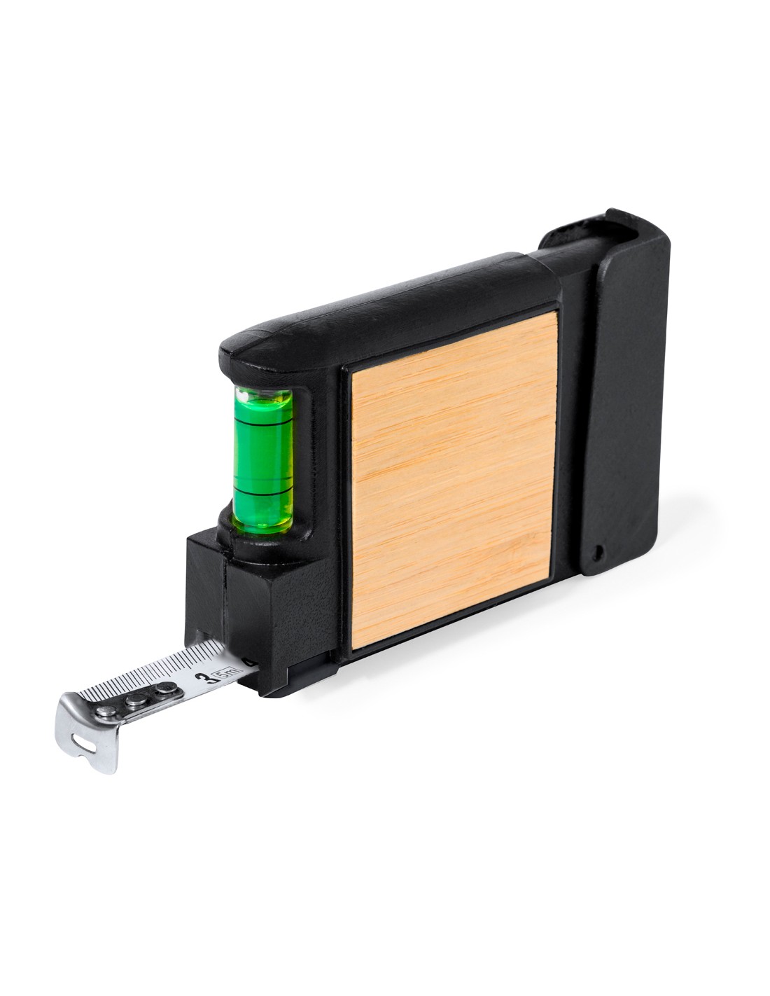 Flexómetro multiherramienta 3m, fabricado en resistente combinación de bambú y ABS. Con 7 funciones: cinta métrica de 3 metros, destornillador con diversas puntas (planas, philips y allen); y nivel integrado. De elegante diseño en negro, con detalles en bambú y viene presentado individualmente en caja de diseño kraft.Materiales como el bambú fomentan la utilización de materias primas naturales, reduciendo las emisiones contaminantes. Proviene de una planta de gran resistencia y versatilidad, con crecimiento y regeneración rápidos, siendo una excelente alternativa al uso de madera tradicional.