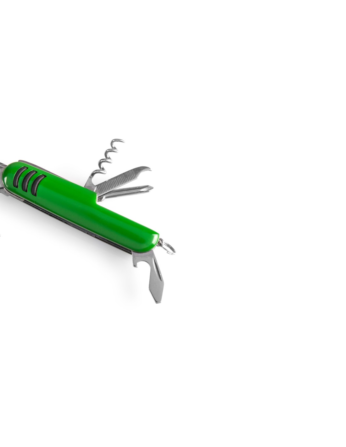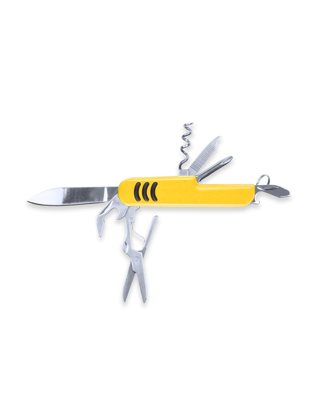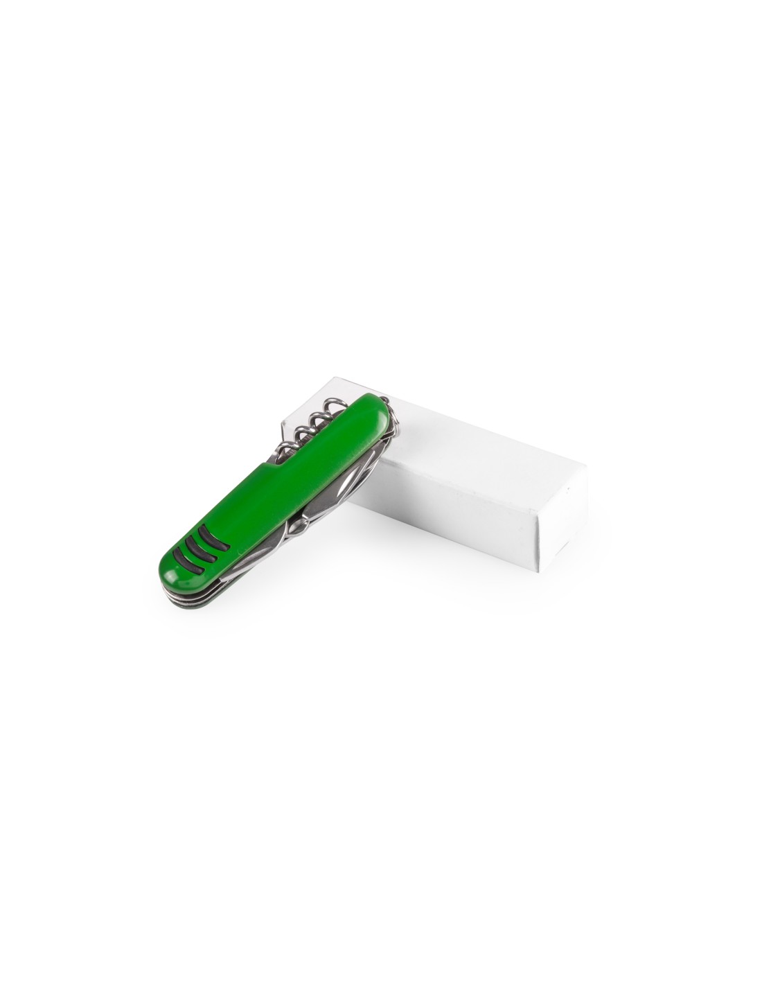 Navaja multiusos con accesorios de acero inox de 9 funciones y mango con accesorio anideslizante en vivos colores. Presentada en caja individual.