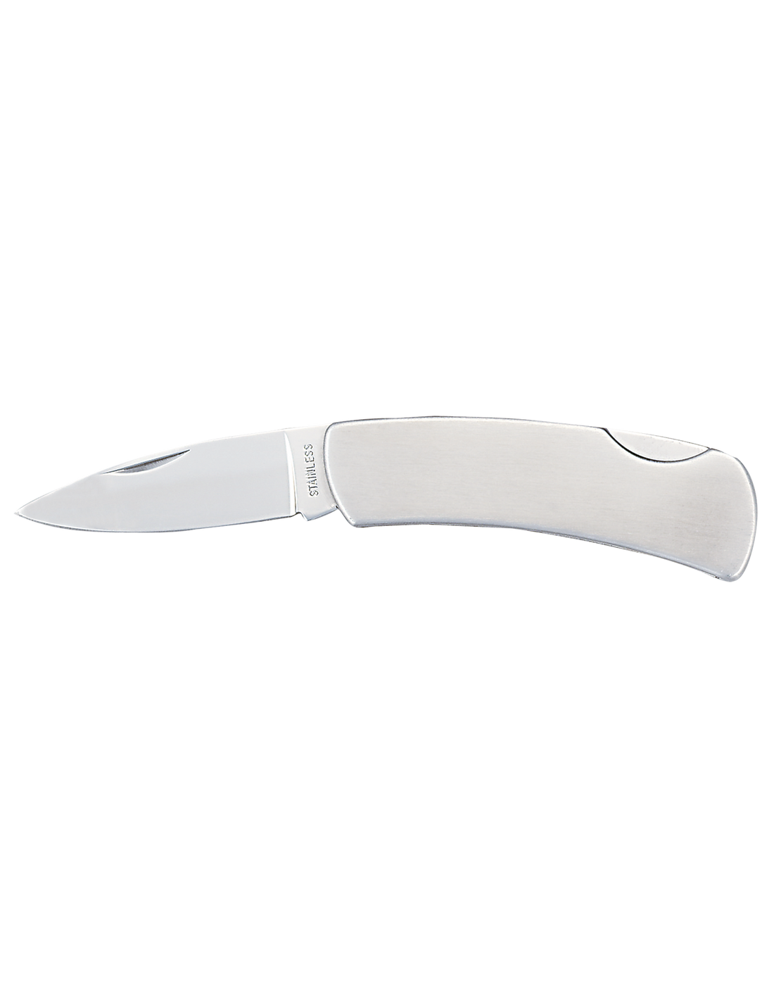 Navaja en acero inox con bloqueo de seguridad y presentada en caja individual.