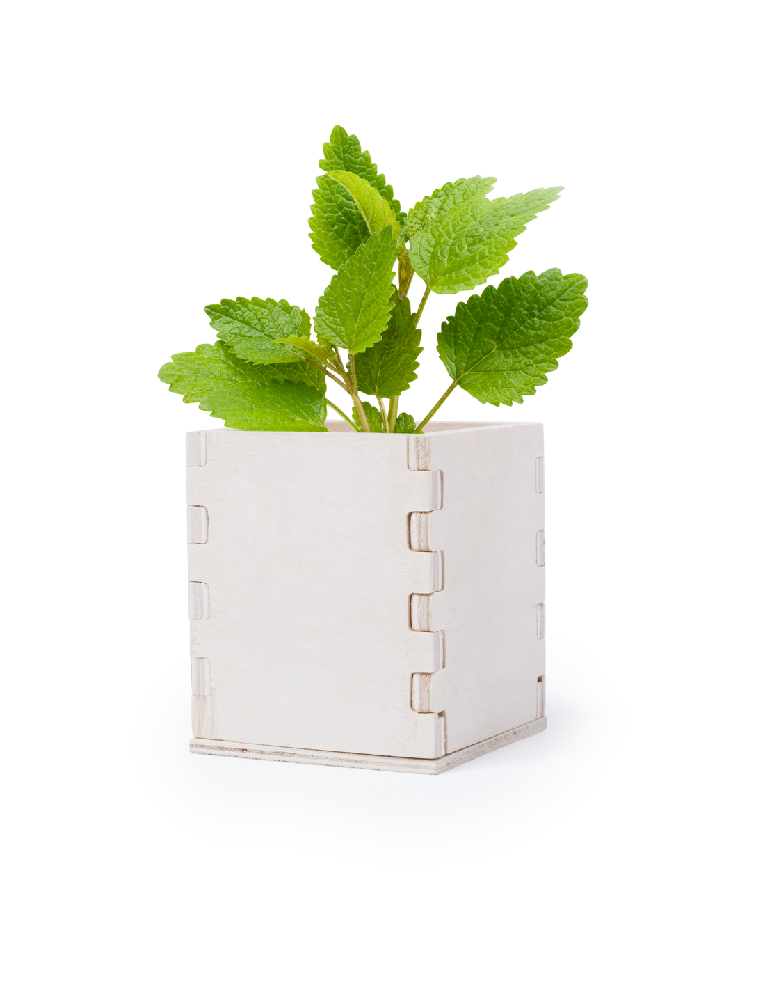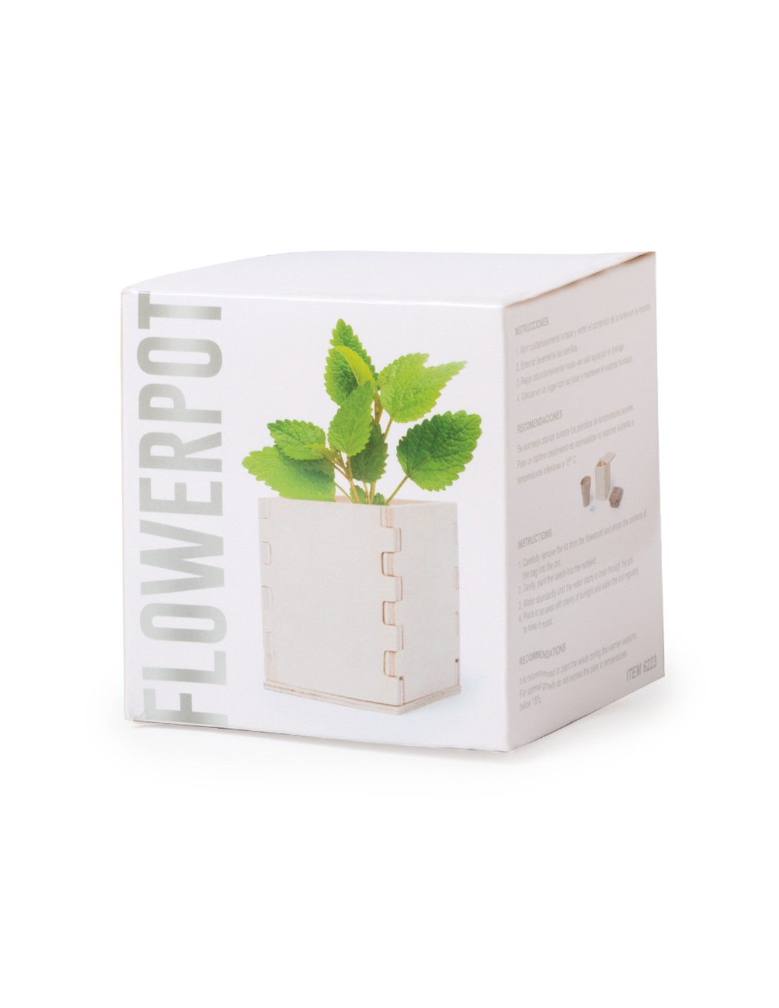 Maceta de menta con macetero de línea nature. Incluye también una original caja de madera para marcaje de logotipo, con 6-8 semillas y sustrato de crecimiento. Presentada en atractiva caja de diseño.
