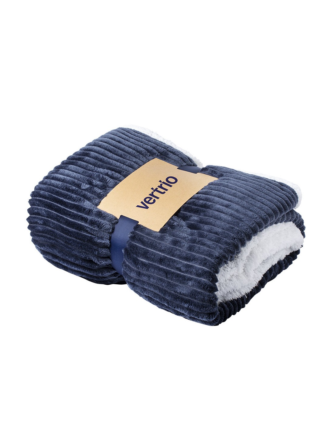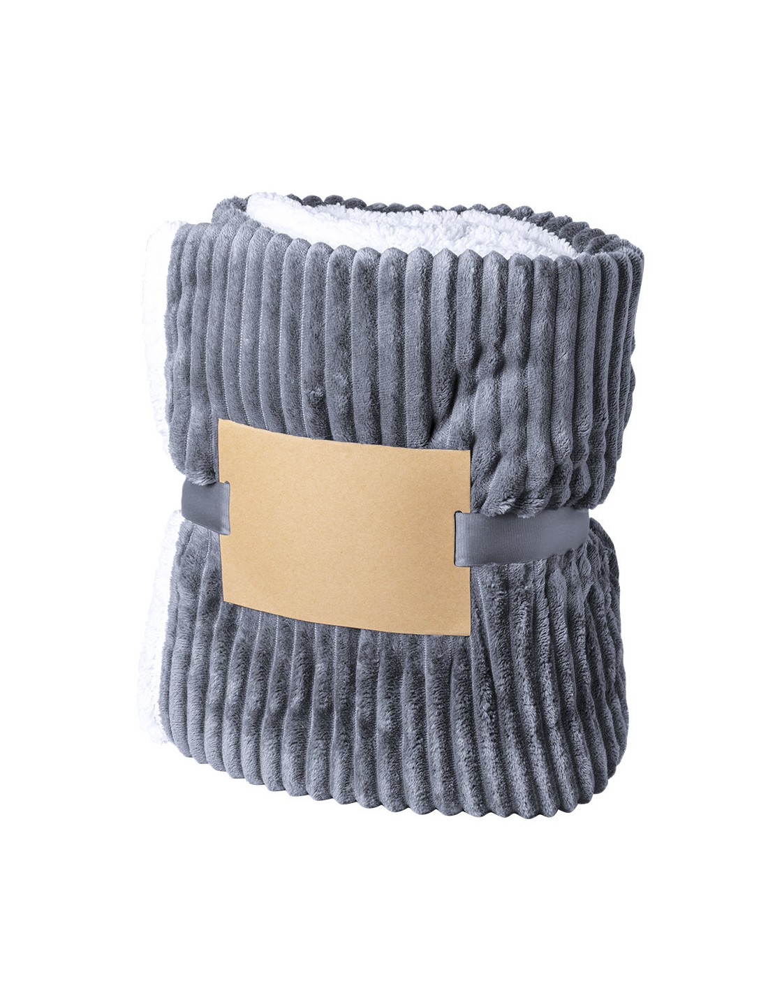 Suave y cálida manta en combinación de materiales coral fleece y sherpa de 440g/m2. En elegante diseño bicolor, tamaño 125x160cm. Presentación individual con cinta a juego y lámina de cartón reciclado para fácil impresión.