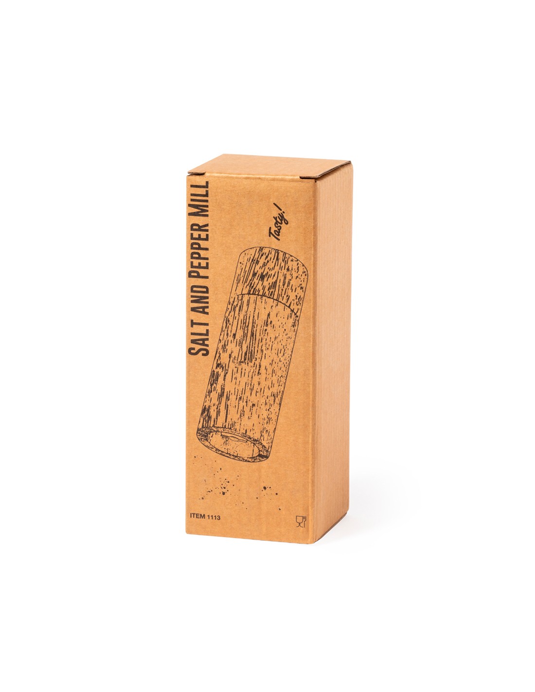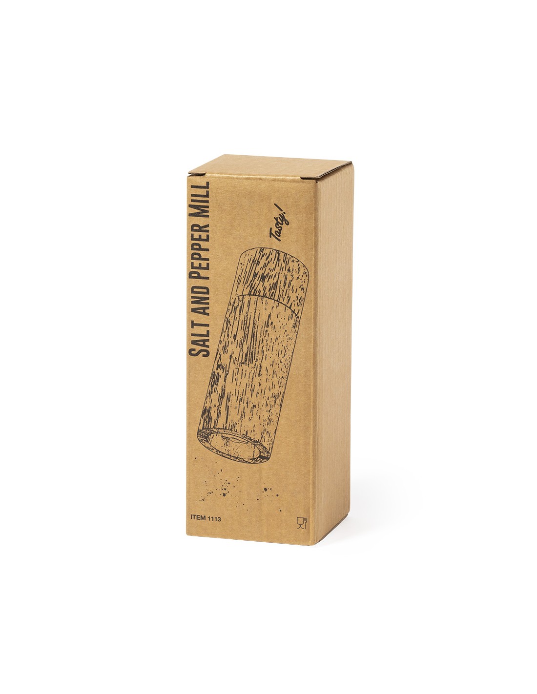 Molinillo para sal y pimienta de línea nature. Fabricado en madera, para así fomentar el uso de materias primas naturales. Con picador de cerámica y rellenable. Presentado en atractiva caja de diseño eco.
