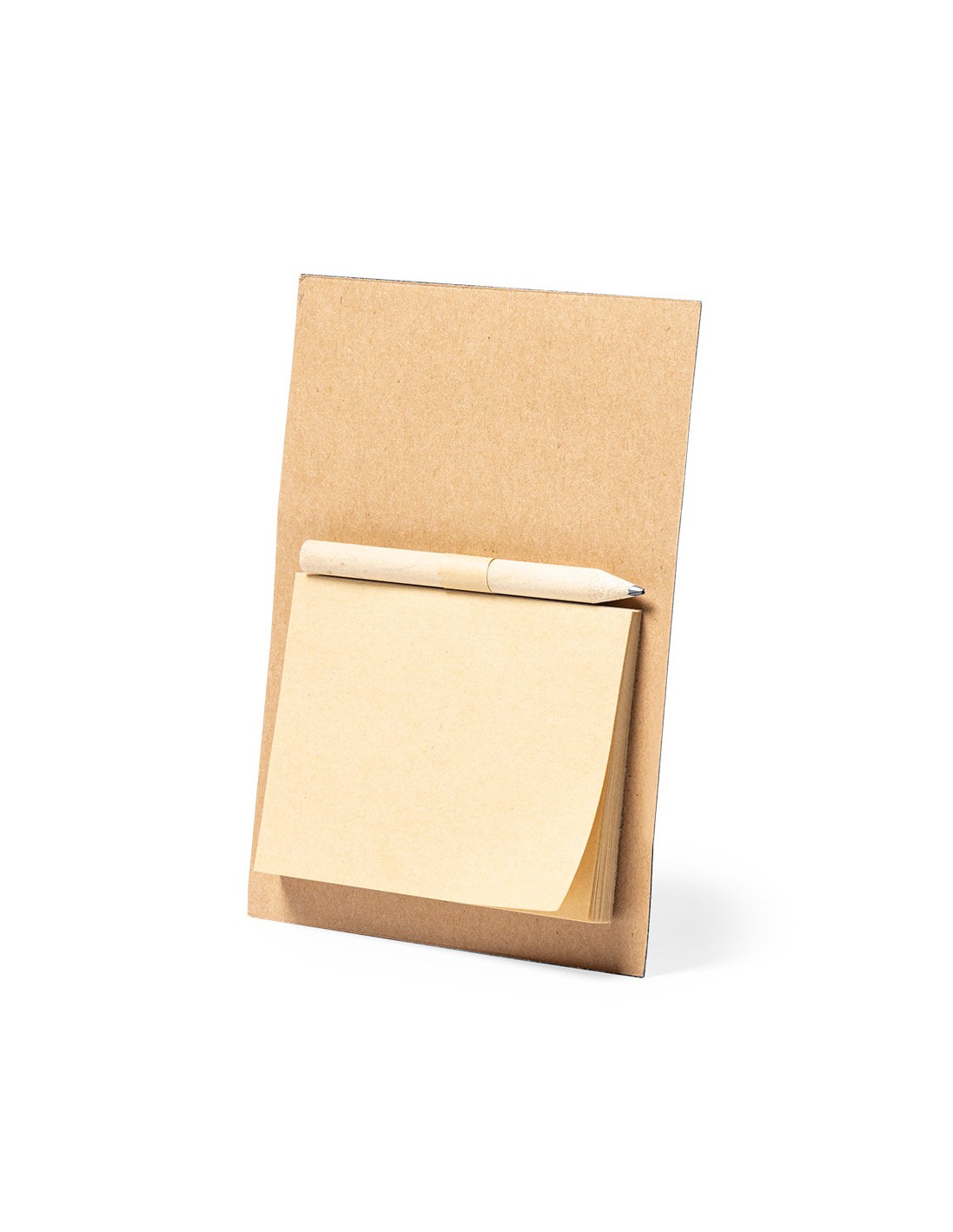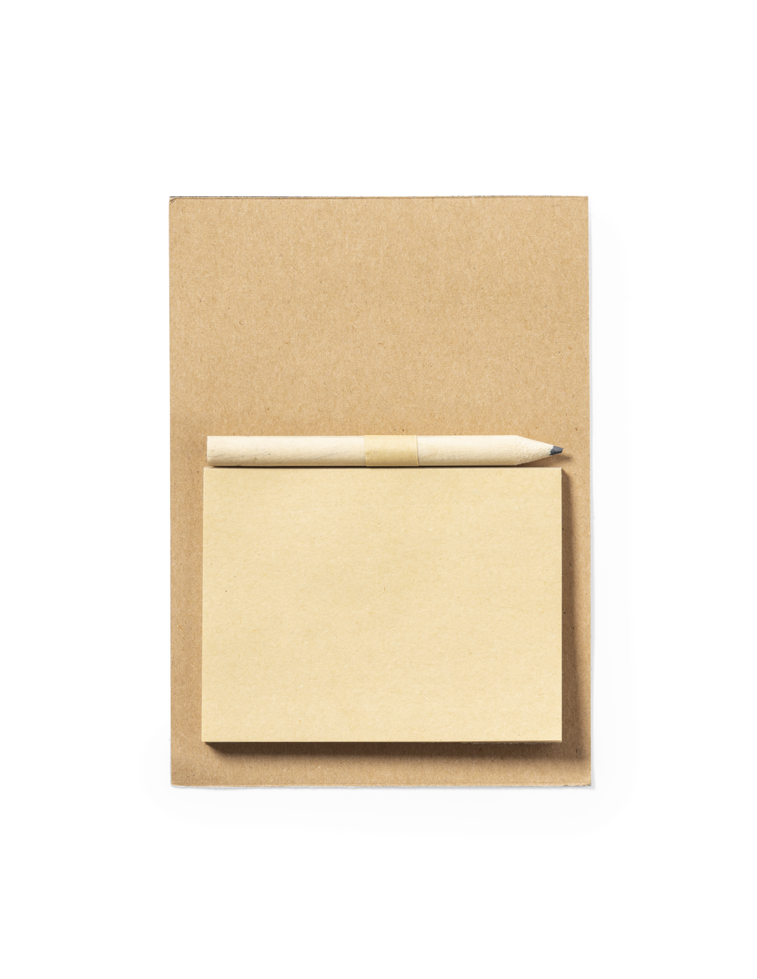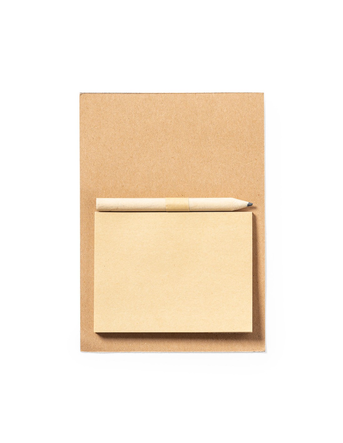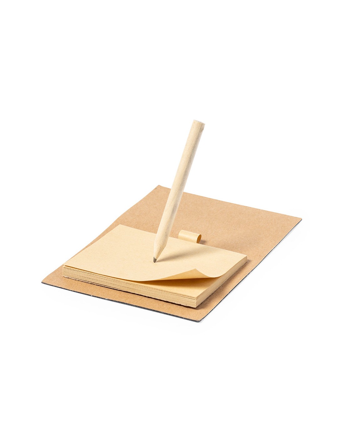 Imán para notas de línea nature. Fabricado en resistente papel reciclado, incluye minilápiz de madera y bloc de notas con 40 hojas lisas en color crema.