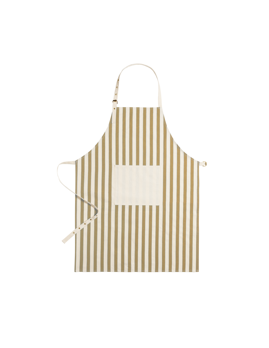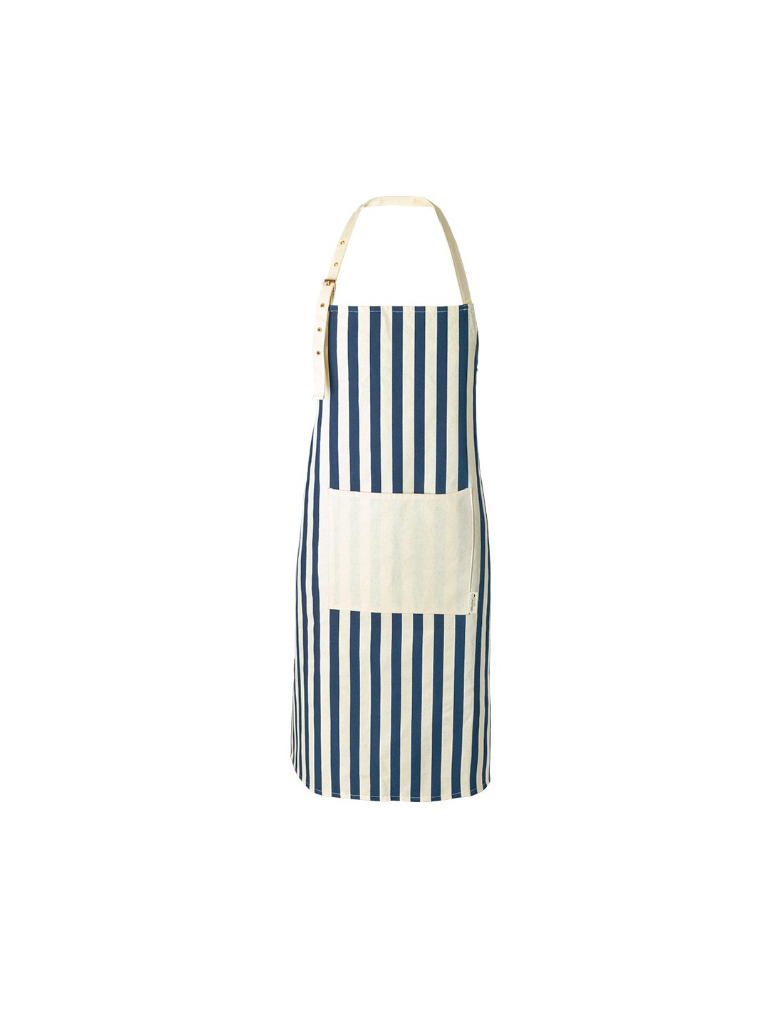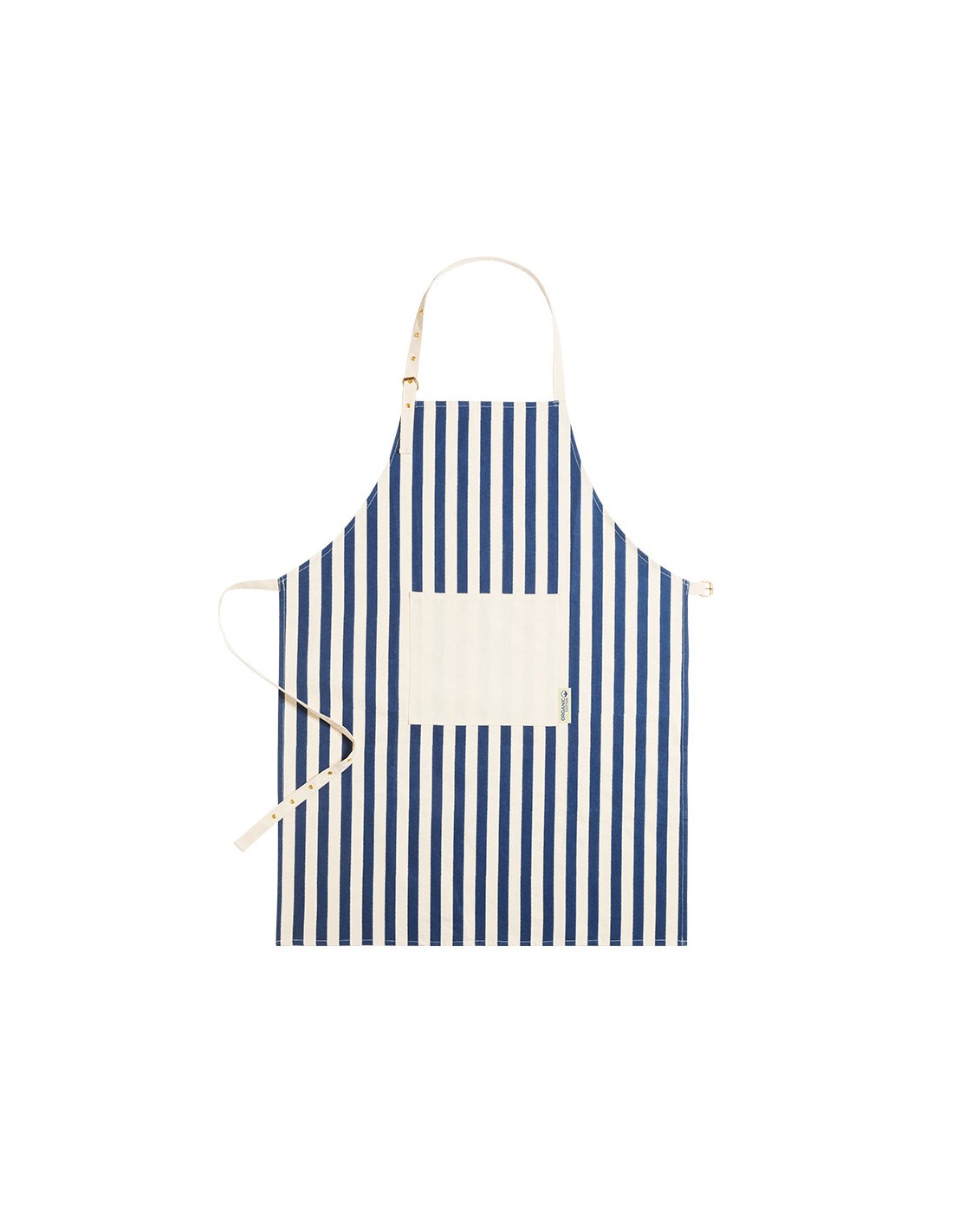 Delantal de línea nature fabricado en material 100% algodón orgánico, cultivado usando métodos sostenibles, sin insecticidas, fertilizante u otros productos químicos, favoreciendo así el cuidado del medio ambiente. De innovador diseño a rayas verticales, con bolsillo frontal en color natural y de corte por debajo de la rodilla. Ajustable, con cintas en cuello y cintura. Distintivo algodón orgánico en etiqueta.
