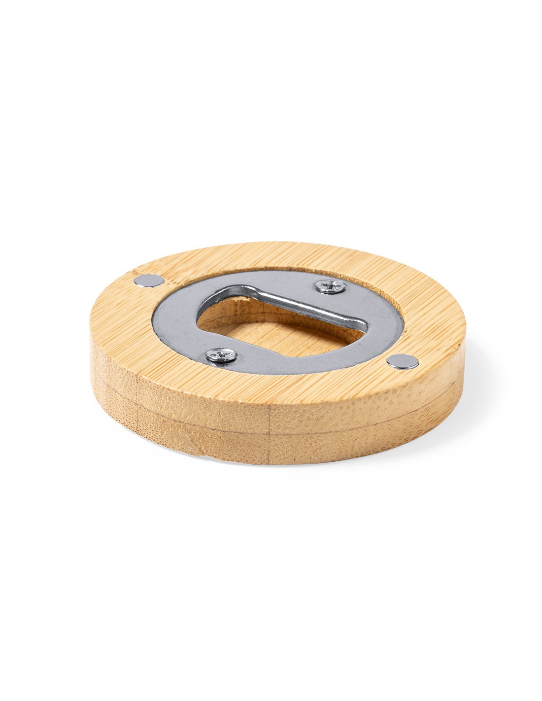 Original abridor magnético de línea nature, fabricado en resistente bambú, con sistema de apertura metálico.