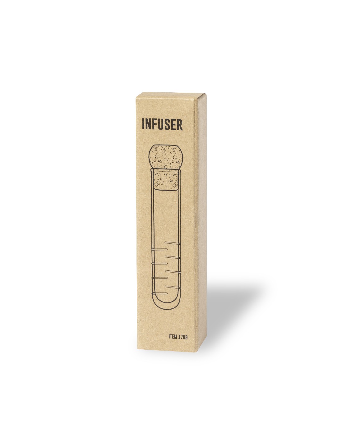 Infusor fabricado en cristal, con tapón en corcho natural. Presentación en caja individual de diseño kraft.
