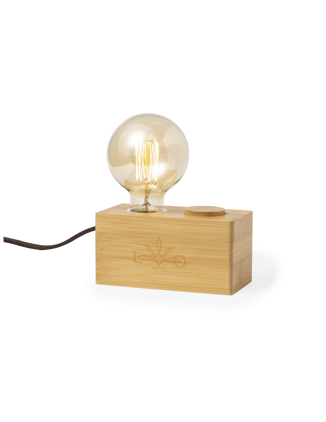 Lámpara de original diseño vintage fabricada en bambú. Bombilla incandescente G80 de 40W, con intensidad de luz regulable y funcionamiento a 220-240V (tipo de enchufe UE). Con base de bambú antideslizante y presentada en caja individual de diseño kraft.