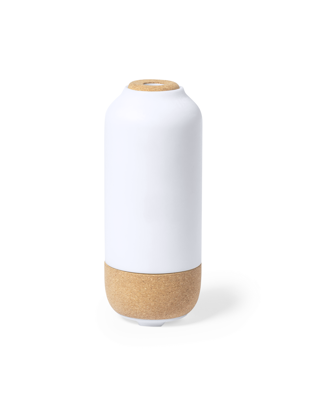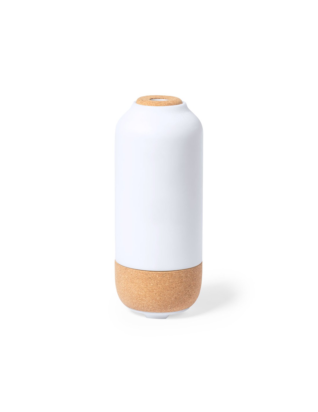 Elegante y decorativo humidificador, fabricado en resistente PP y base en corcho natural. Con 2 modos de vaporización y depósito de 200 ml, indicado para uso en estancias de hasta 25m2. Conexión USB, con cable Tipo C incluido de 1 m. Presentado en caja individual de diseño kraft, con manual de instrucciones en español e inglés y filtro de recambio.