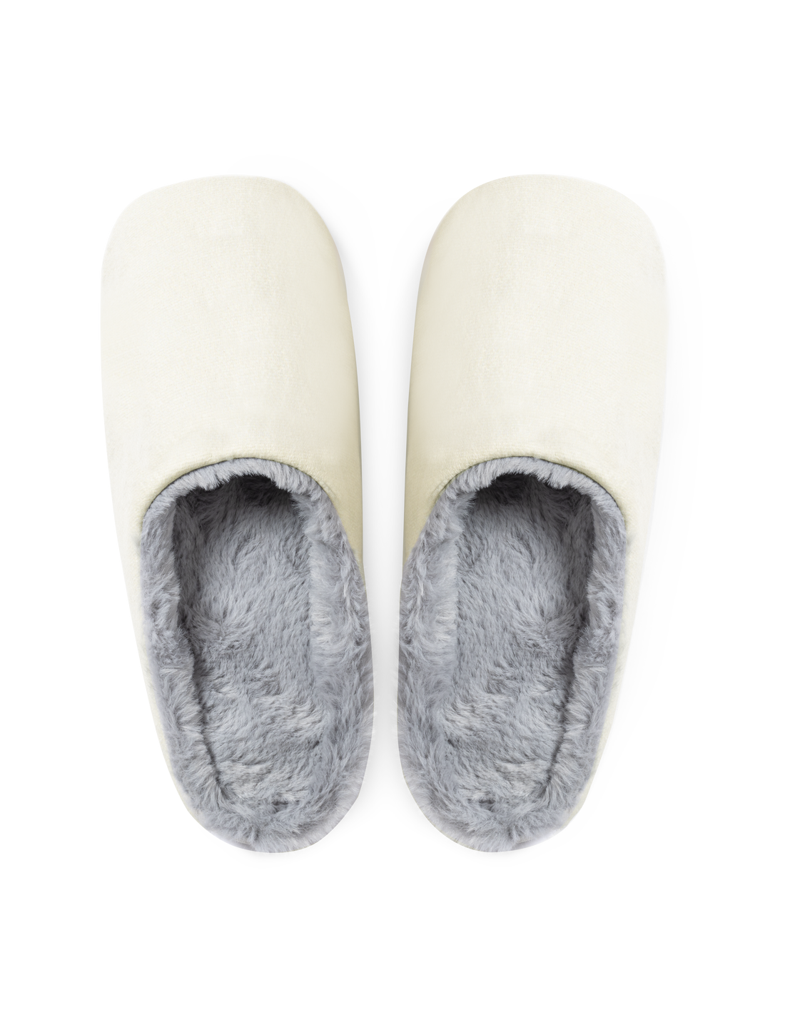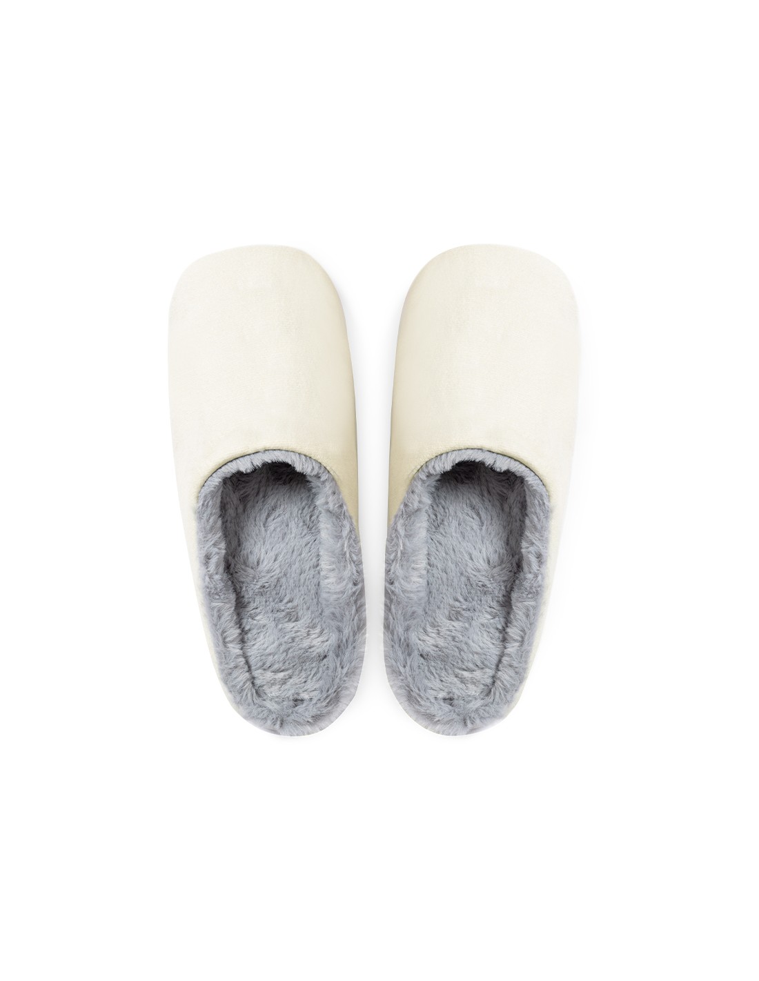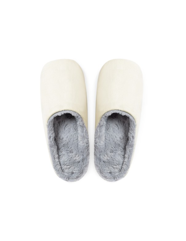 Par de zapatillas unisex. Fabricadas en suave y confortable algodón e interior acolchado con revestimiento afelpado en color gris. Disponibles tallas 36-38 y 42-44.