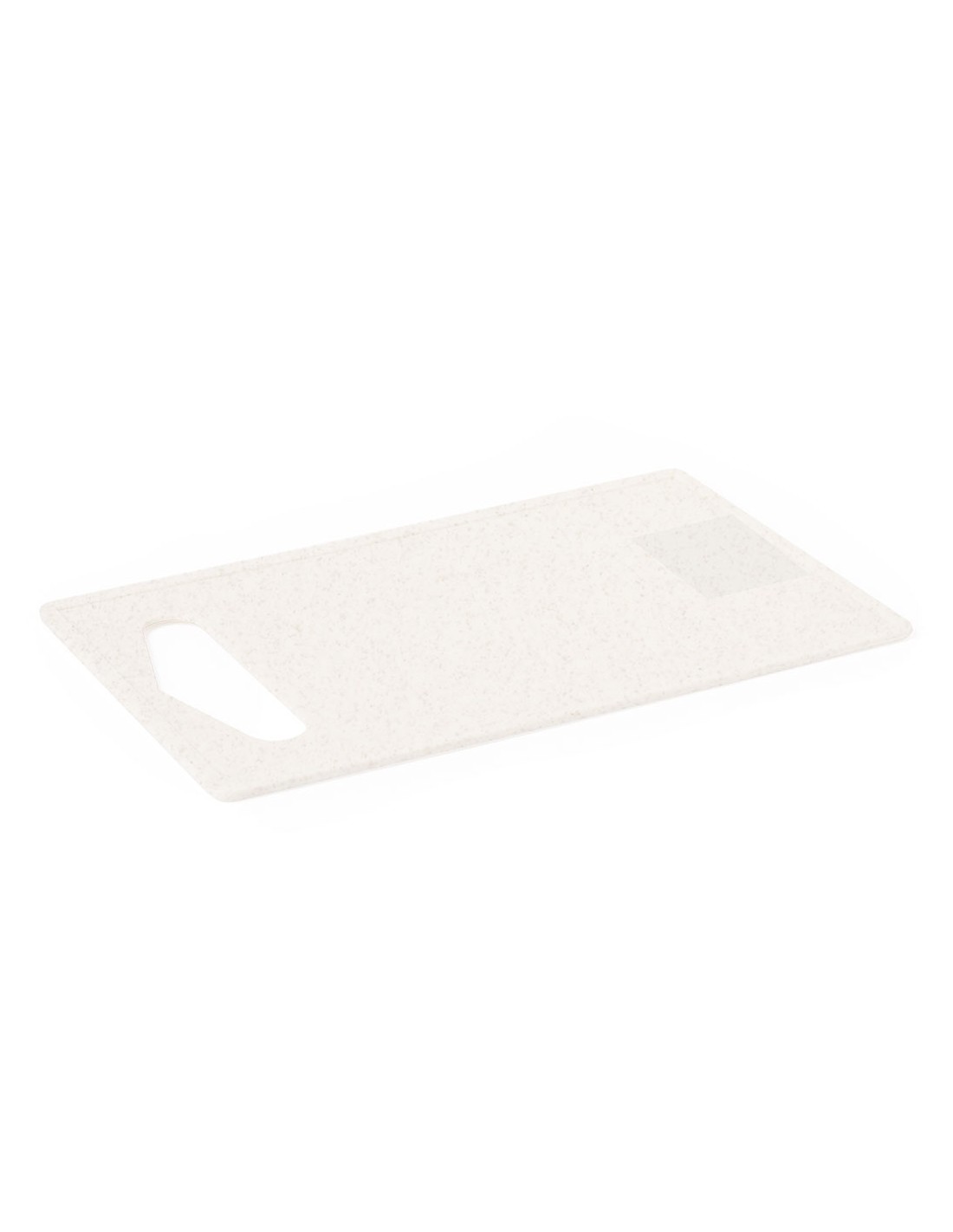 Tabla de cocina para cortar fabricada en PP. Con asa para un firme agarre, fácil de limpiar y guardar. Presentada individualmente bolsa reciclada.