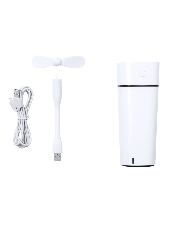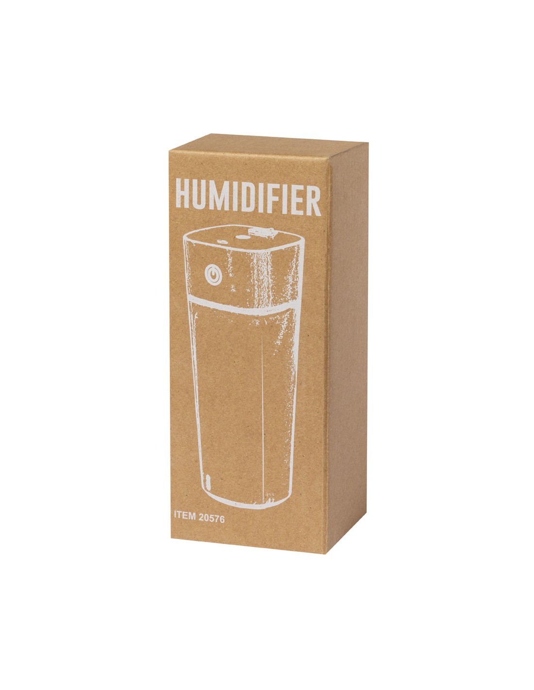 Humidificador elegante y decorativo con una capacidad de 240 ml. Además, cuenta con luces LED con dos posiciones de iluminación (fija e intermitente). Incluye un práctico cable de alimentación USB. Presentado individualmente en caja de diseño kraft.