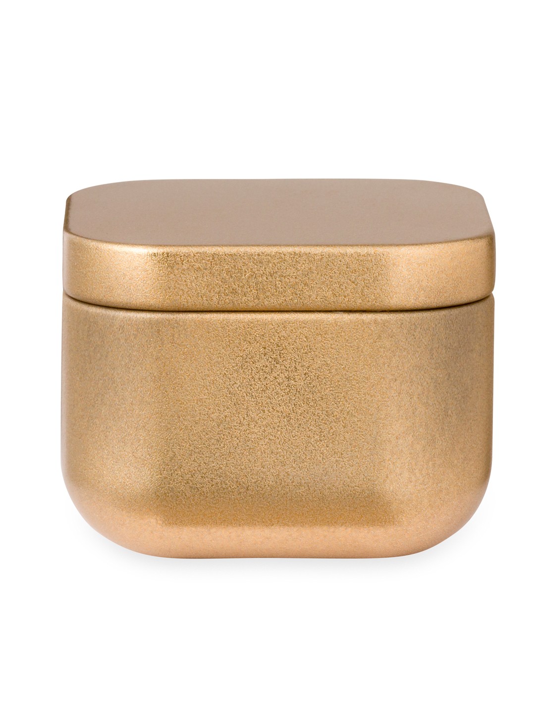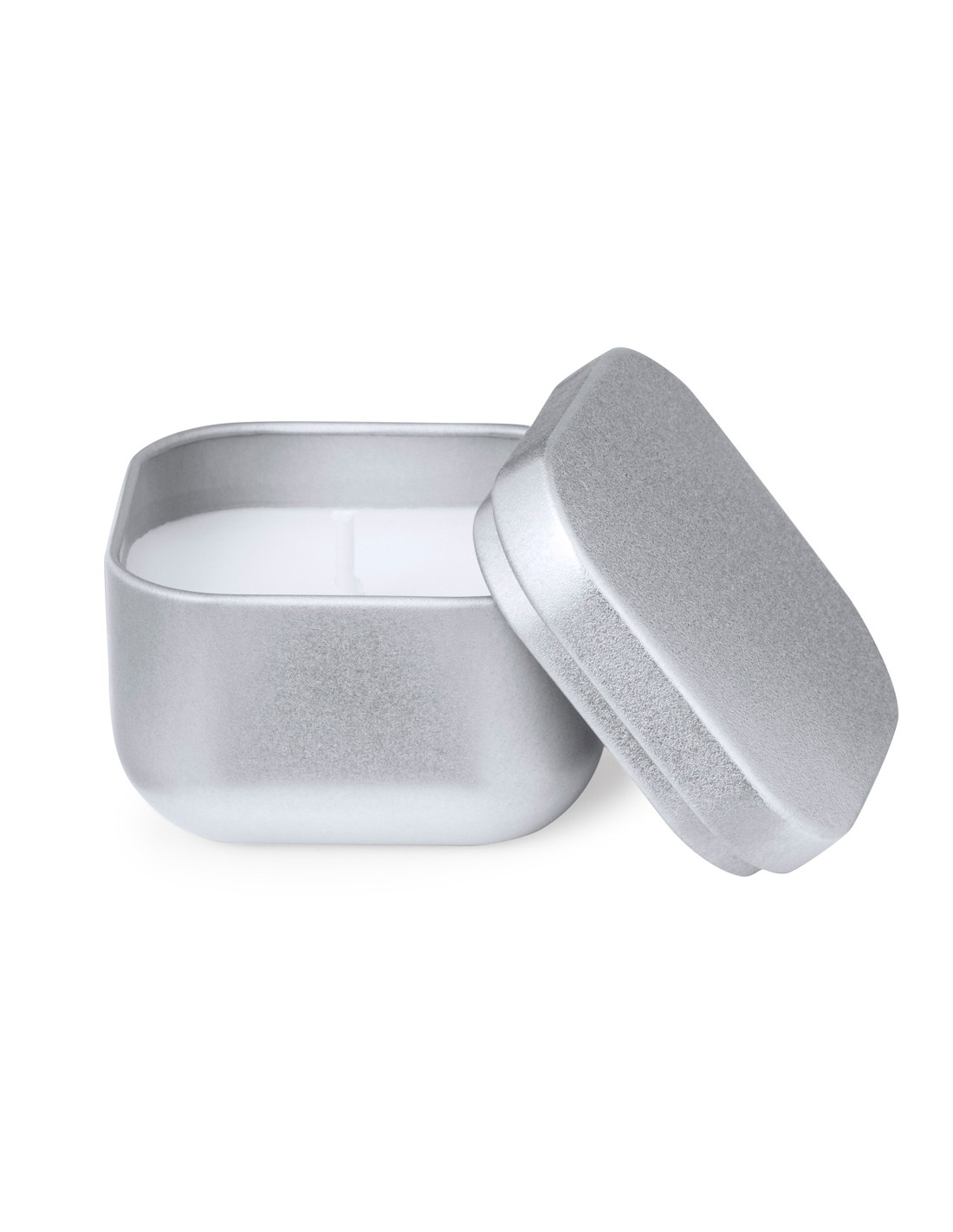 Vela aromática en tarro de metal en elegantes colores, con aroma a vainilla. Presentada en caja individual diseño kraft.