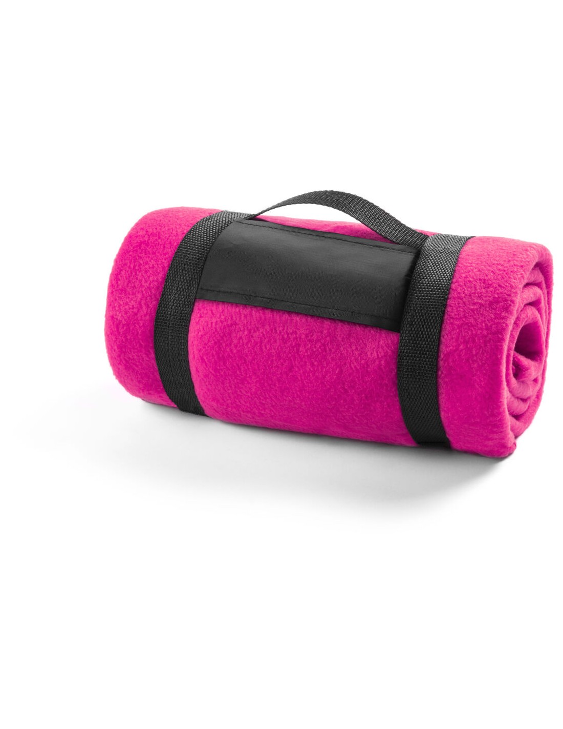 Manta de 130x160cm en variada gama de vivos colores. En material polar fleece anti-pilling de 200g/m2 y con asa de transporte de cierre de velcro en suave poliéster.