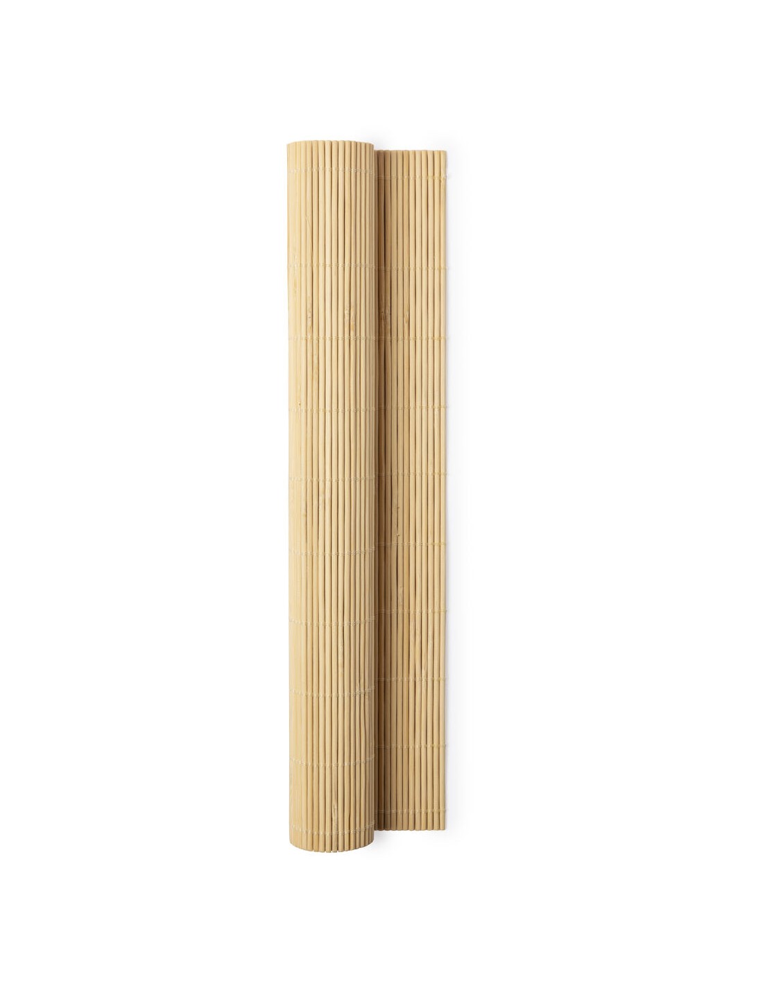 Salvamantel plegable de diseño rectangular en madera de bambú de variados colores. Con refuerzos en resistente hilo.
