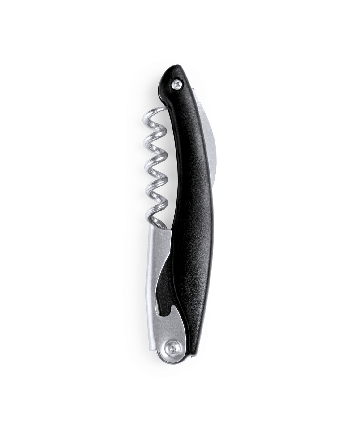 Clásico sacacorchos con accesorios de acero inox. Incluye cortacápsulas y abridor. Presentado en caja individual.